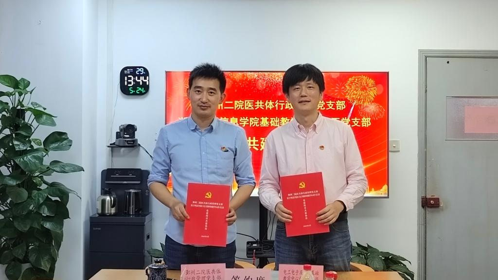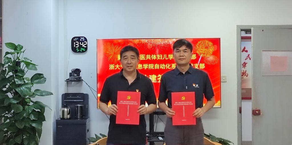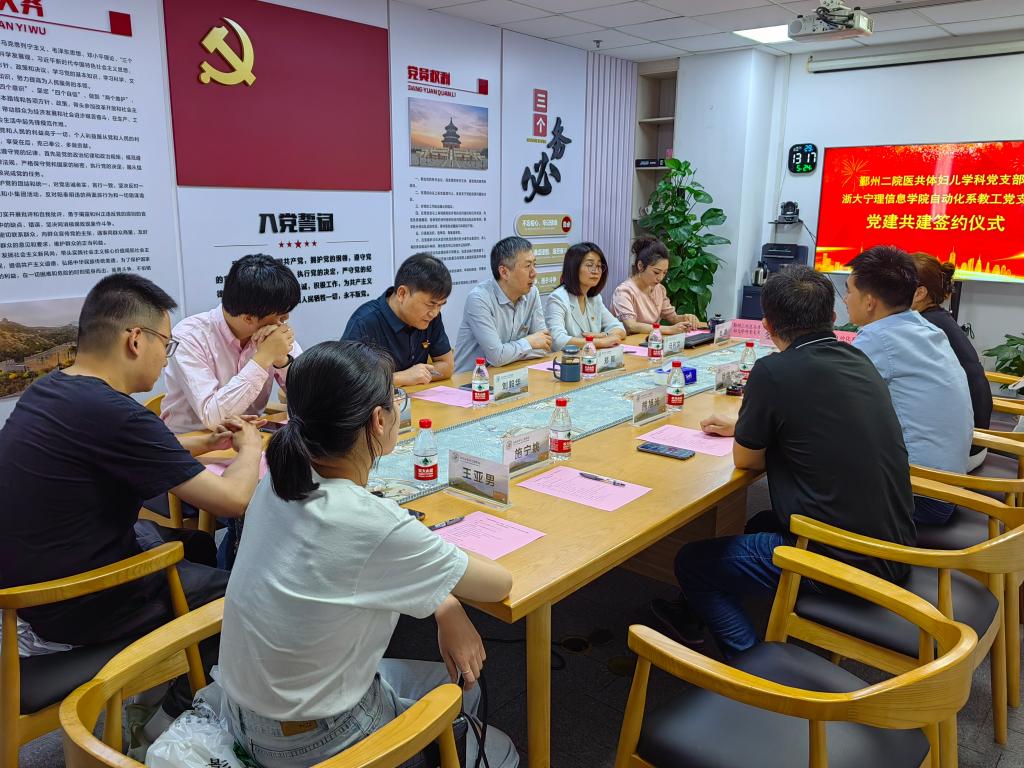 永利65335com自动化系教工党支部书记刘毅华、电工电子及物理基础教学中心教工党支部书记胡昉;鄞州二院医共体妇儿学科党支部书记熊旭光、行政管理党支部书记徐锦龙分别介绍了支部情况,并签订了共建协议。