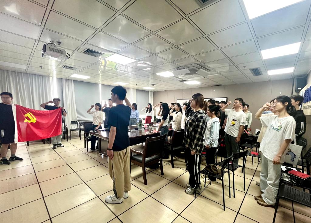 信电员工党支部翁亨鹏同学号召全体毕业班党员文明离校。他围绕从文明离校倡议出发,号召党员同学加强党的理论学习,增强青年责任担当和服务同学意识,并代表毕业生党员进行文明离校承诺。翁亨鹏表示作为毕业生党员,毕业之后也应该严格要求自己,在工作岗位上继续努力,扎实工作,自觉遵守党纪,加强理论学习,保持优秀,追求卓越,同时,常怀感恩之心,为母校争光、为党旗添彩。随后,全体参会毕业生党员在庄严的党旗下宣誓,共同重温了入党誓词,再次牢固理想信念。