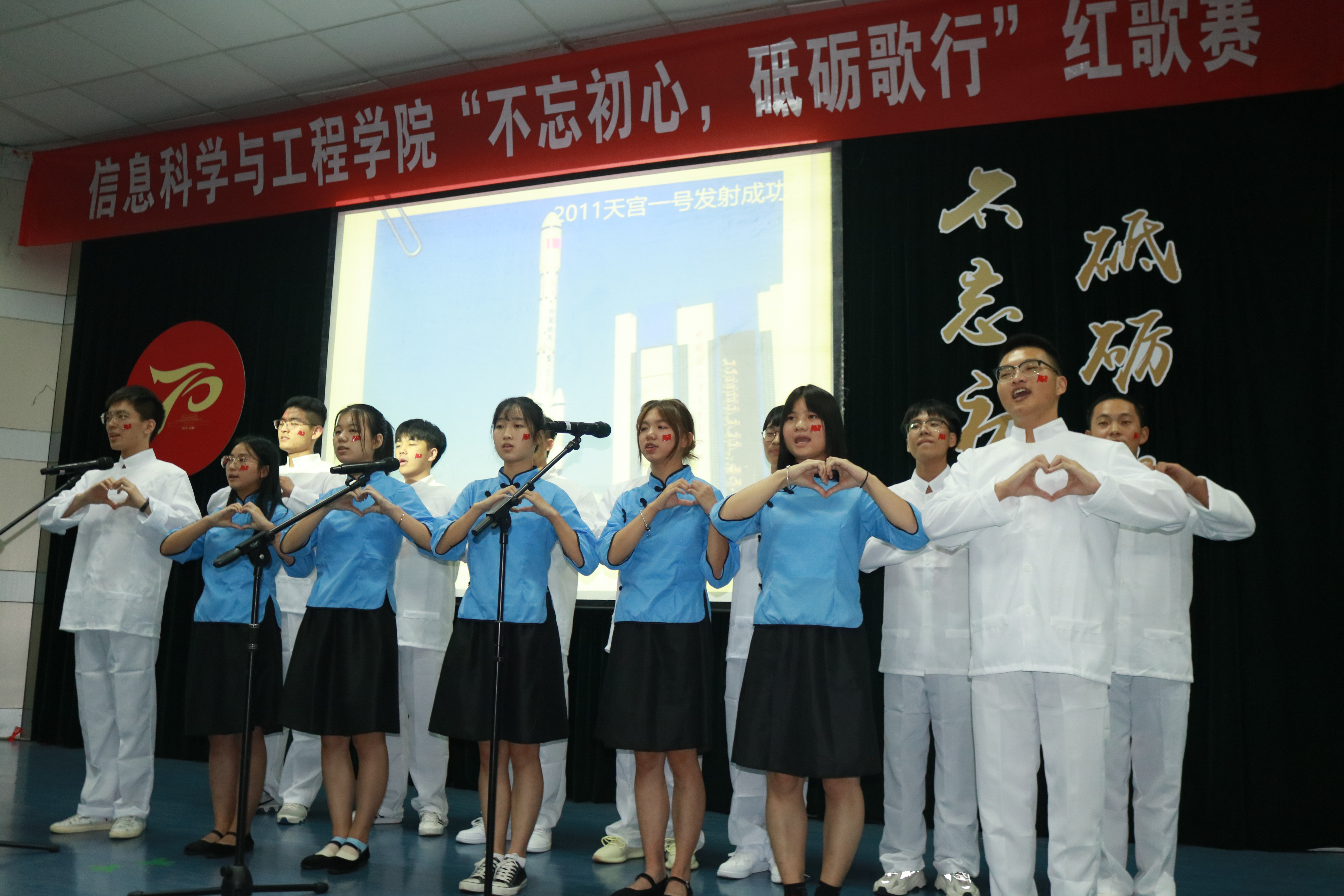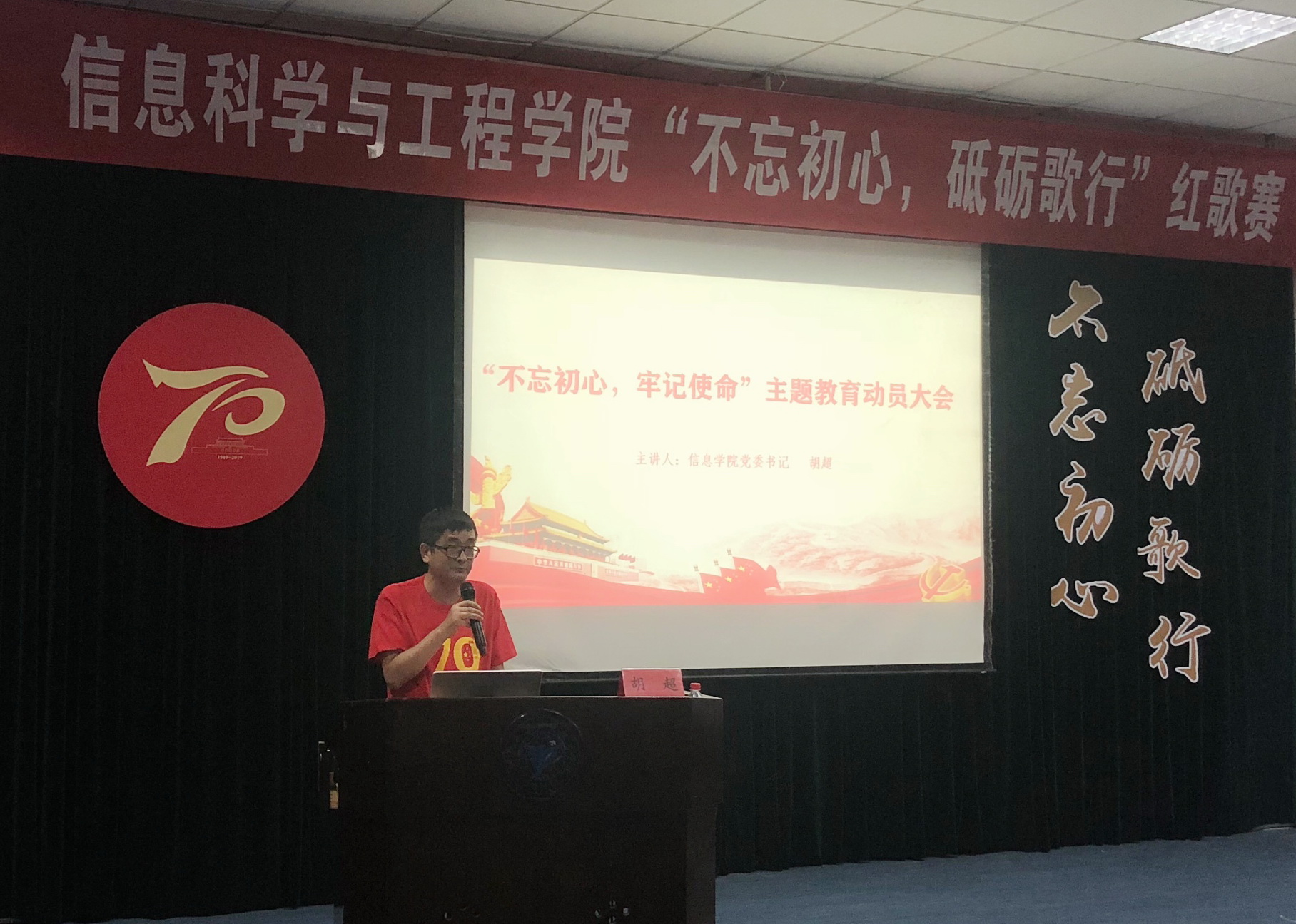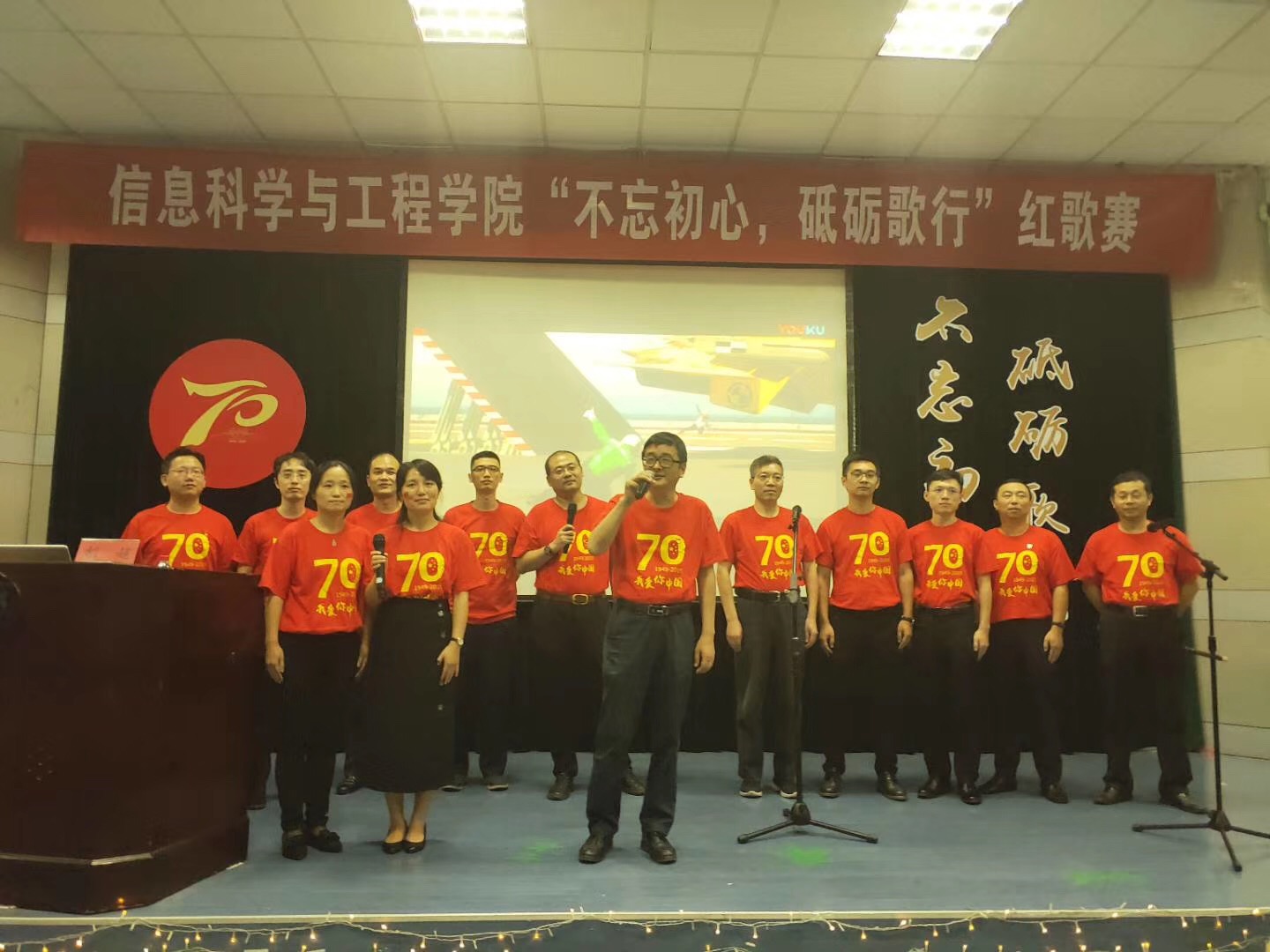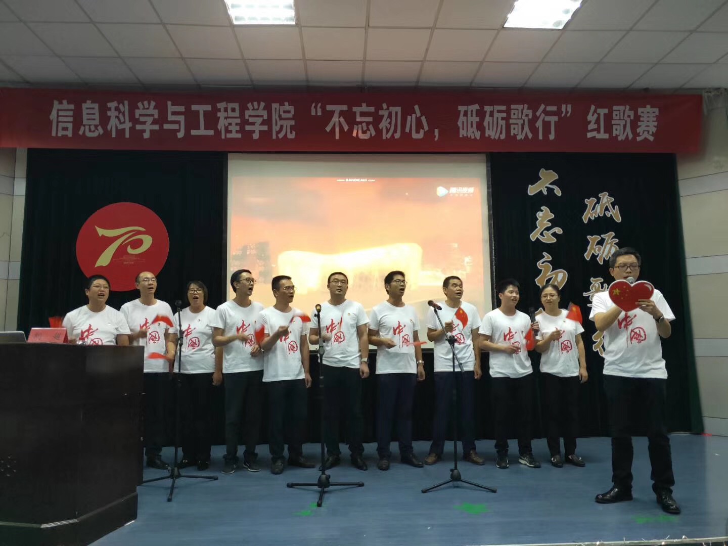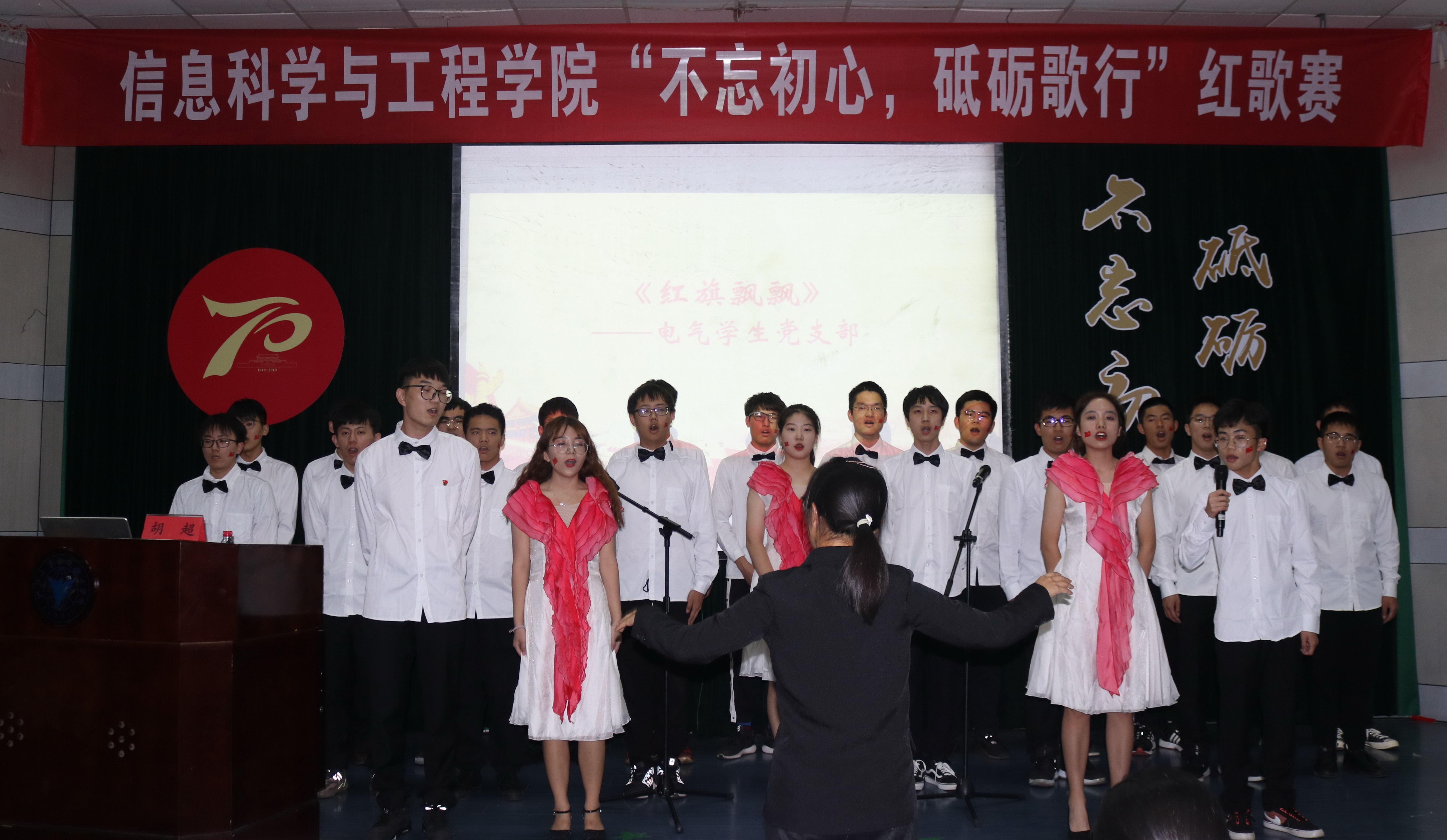 “让我们用经典歌曲,去深深体会前辈们奋勇前行,不畏艰辛,为祖国发展努力奋斗的意志和信念,让我们用歌声去唱响迎接祖国诞辰70周年的礼赞之声。”