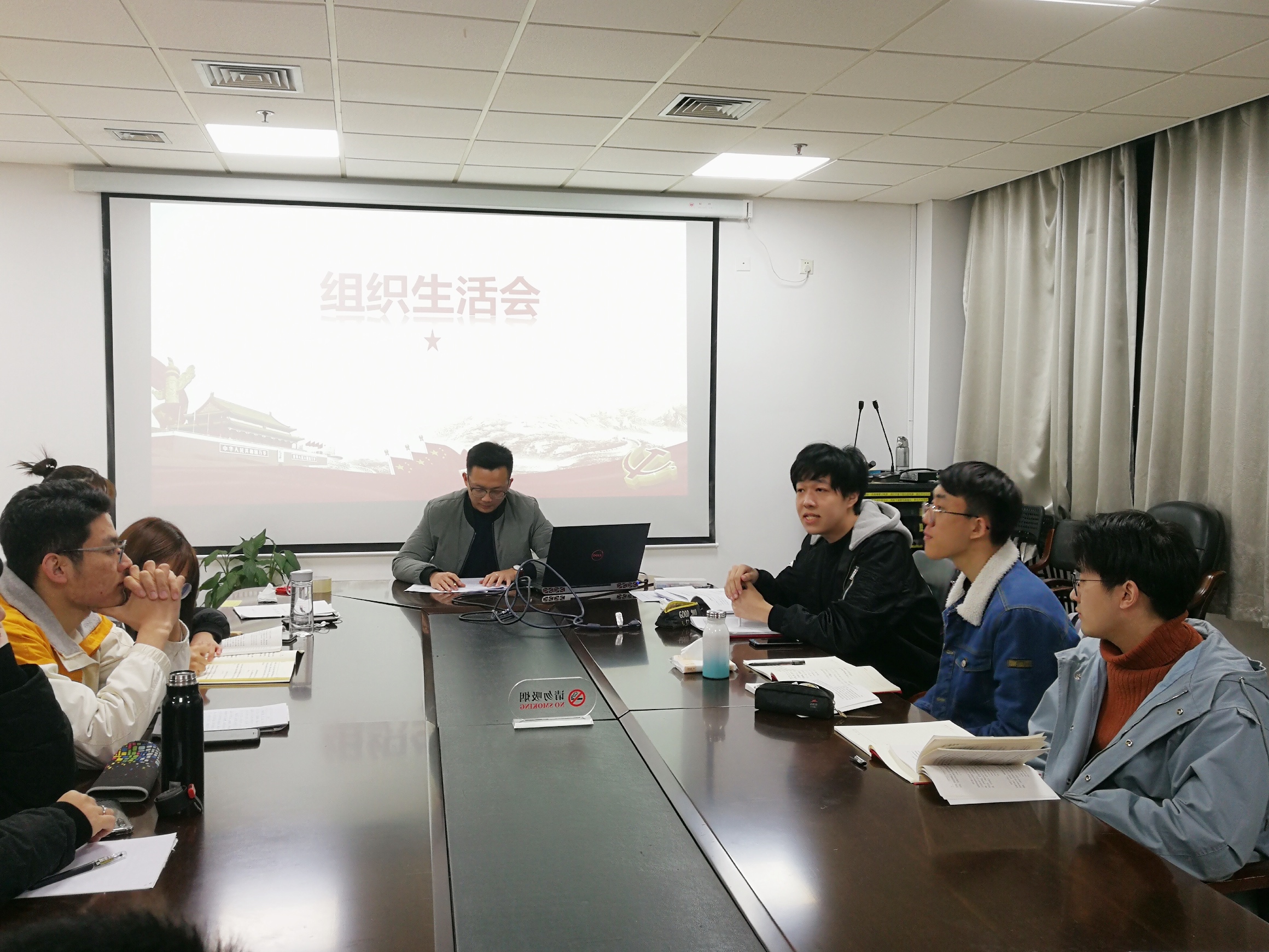 最后,金老师指出现在党支部存在的一些问题,提醒各位党员同志戒骄戒躁;并鼓励党员同志们积极向上,严格要求自己,做好党员的模范作用。