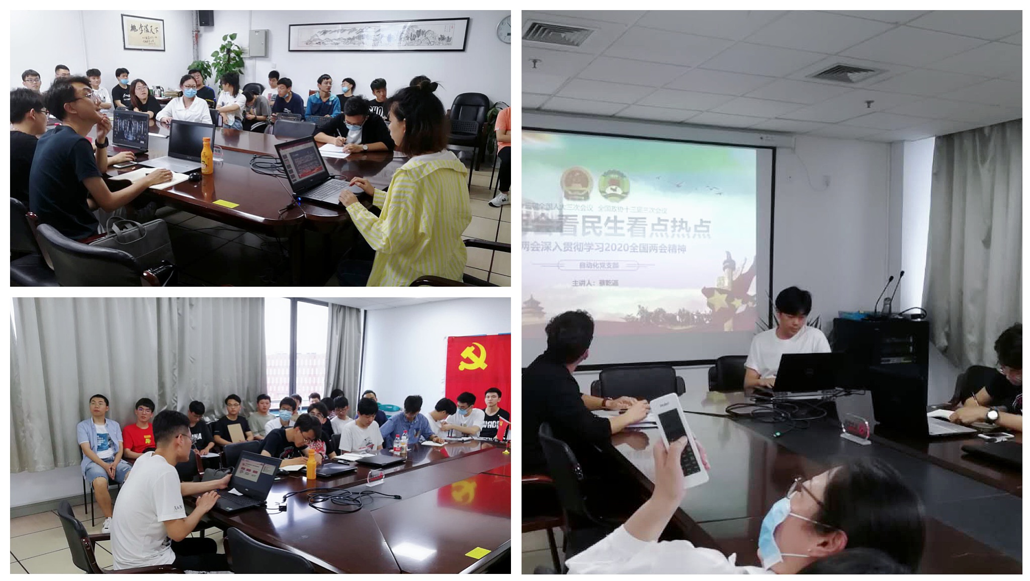 随后,支部开展了充分的交流讨论。支部书记金智展老师谈到,这次特殊时期召开的不平凡的两会,取得了一系列会议成果,凝聚起上下同心、砥砺奋进的强大力量,对我国的各项事业发展产生深远的影响。他号召同学们在“两会”精神的指引下,向先进榜样学习,提升专业能力,更好地发挥党员的先锋模范作用,为国家和社会的发展贡献自己的青春力量!