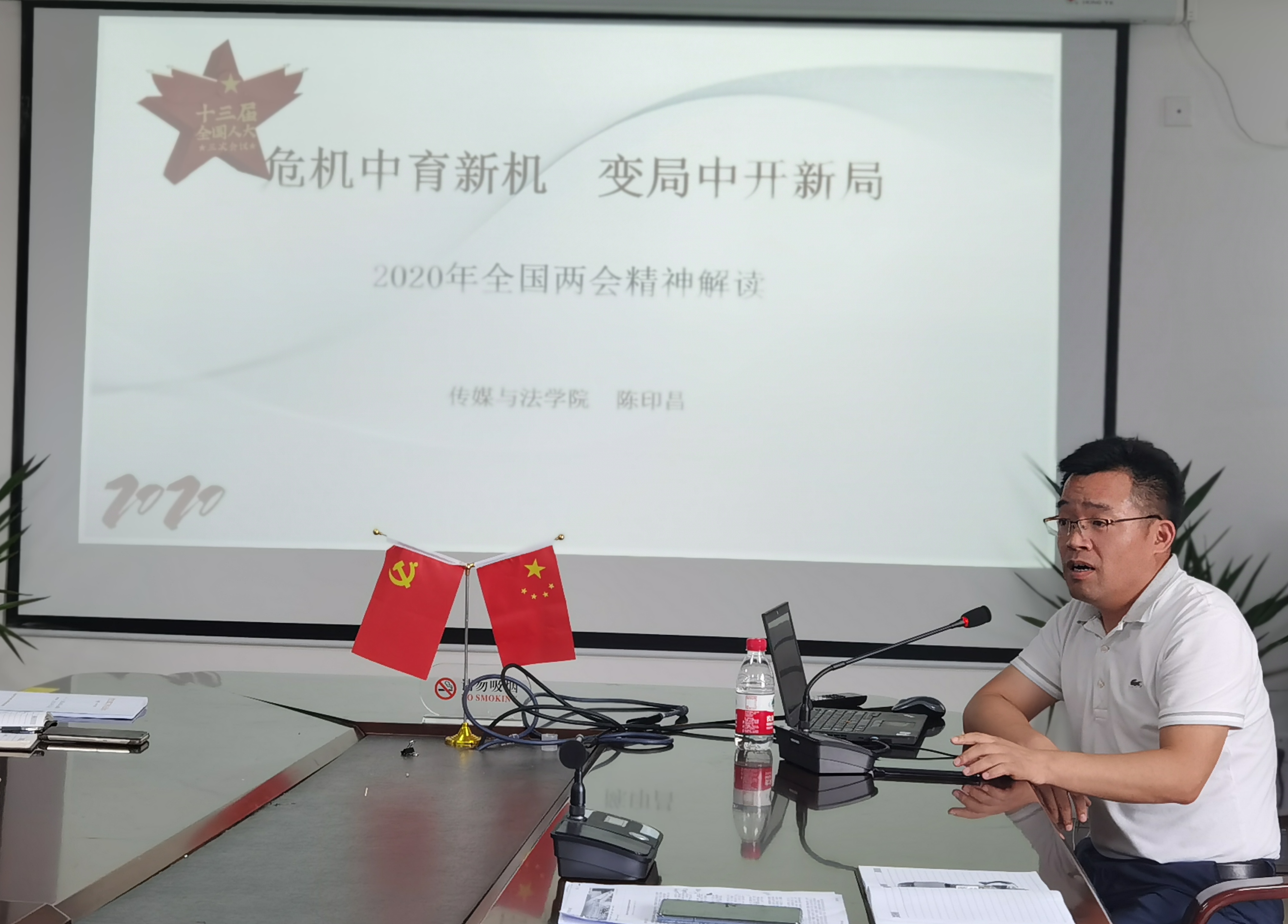 6月28日,​永利65335com“党课开讲啦”活动在石麟9楼会议室举行,本次活动特邀传媒与法公司陈印昌老师作2020年全国两会精神解读的报告。永利65335com党委书记应中元主持,公司全体教工党员和员工党员代表参加了活动。