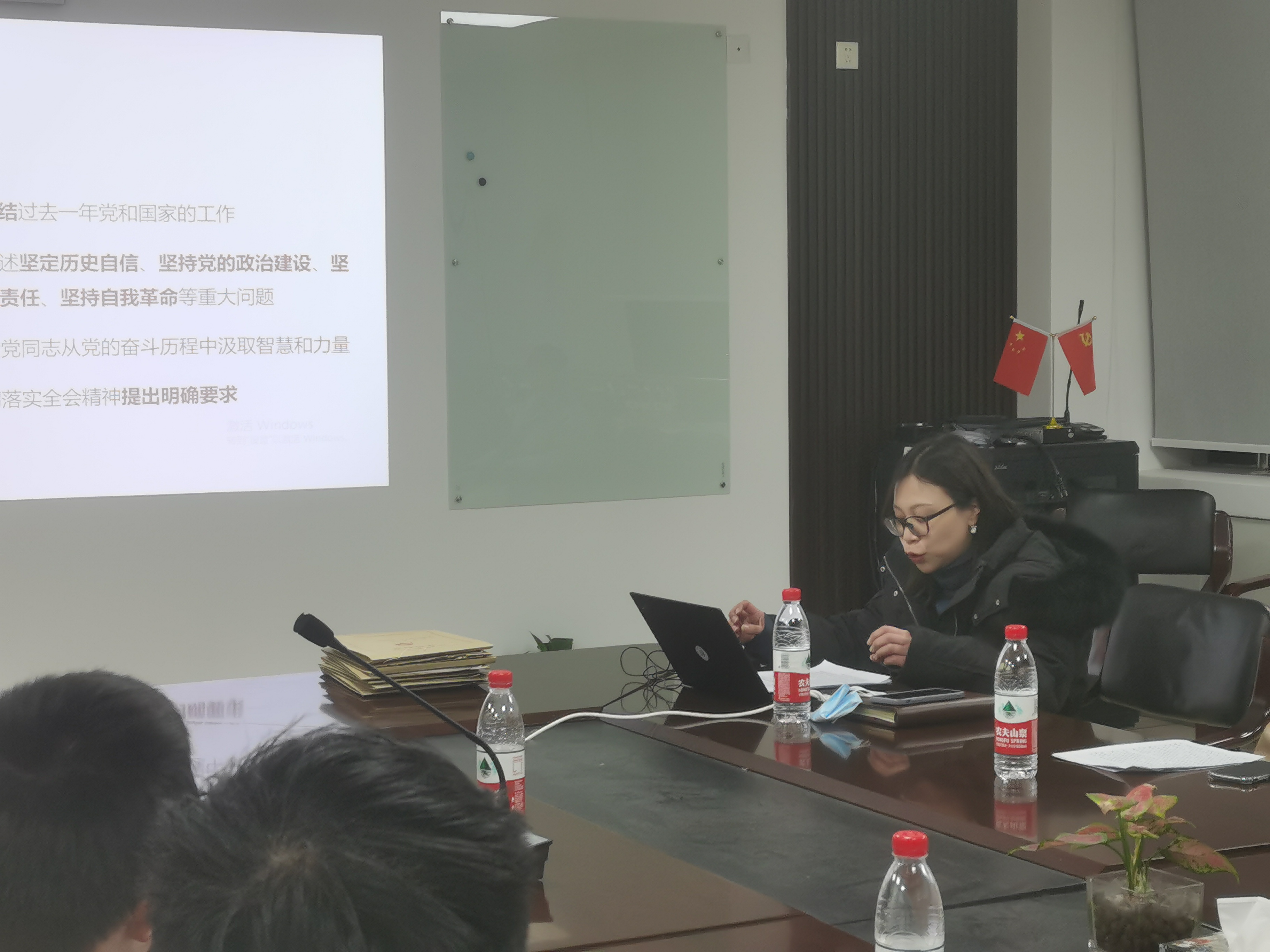党的十九届六中全会是在我们党成立一百年之际,党领导人民实现第一个百年奋斗目标、向着实现第二个百年奋斗目标迈进的重大历史关头召开的一次十分重要的会议。顾老师从全会的重大意义、重要成果、精神体会等三个方面对十九届六中全会精神做了深刻阐释。带领我们从全会公报出发,就“最长公报”、“形式判断”、“祖国统一”等三个关键词谈了自己的体会和深入学习的重大意义。她指出全会的重大成果是审议通过了《中共中央关于党的百年奋斗重大成就和历史经验的决议》,深刻总结了我们党一百年来团结带领人民从胜利走向胜利的伟大历程,深刻总结了我们党一百年来从小到大、从弱到强的成长历程,深刻总结了我们党一百年来加强自身建设、推进自我革命的伟大实践。最后,顾老师对员工党员提了几点建议,新时代员工党员要做“两个确立”忠诚拥护者,要进一步坚定文化自信,要不负总书记对广大青年的殷切期望:肩负历史使命,坚定前进信心,立大志、明大德、成大才、担大任,努力成为堪当民族复兴重任的时代新人,让青春在为祖国、为民族、为人民、为人类的不懈奋斗中绽放绚丽之花。