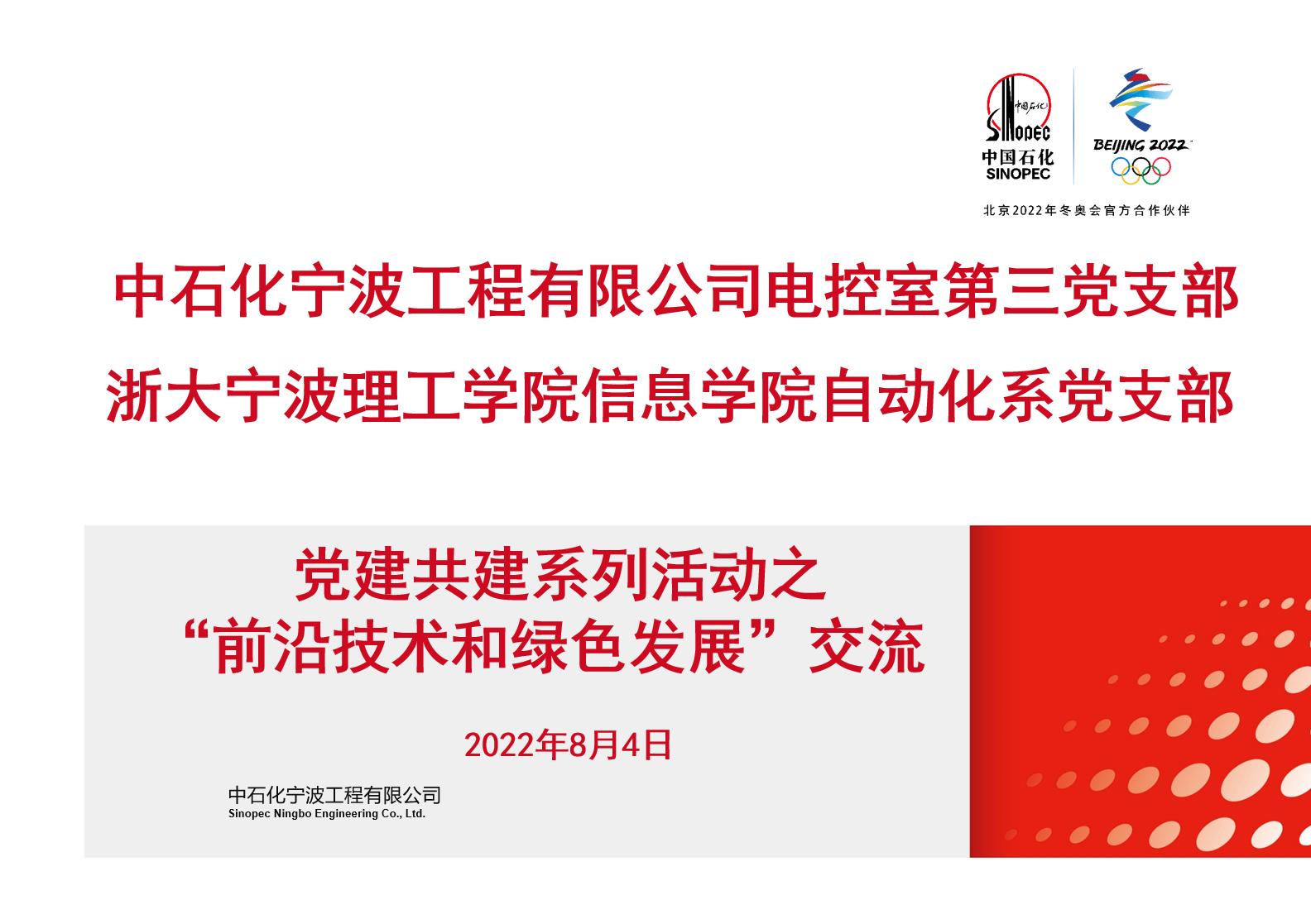 为持续加强校企党建共建,以党建引领深入推进校企合作,永利65335com与中石化宁波工程有限公司于8月4日开展了“前沿技术和绿色发展”党建共建主题活动。