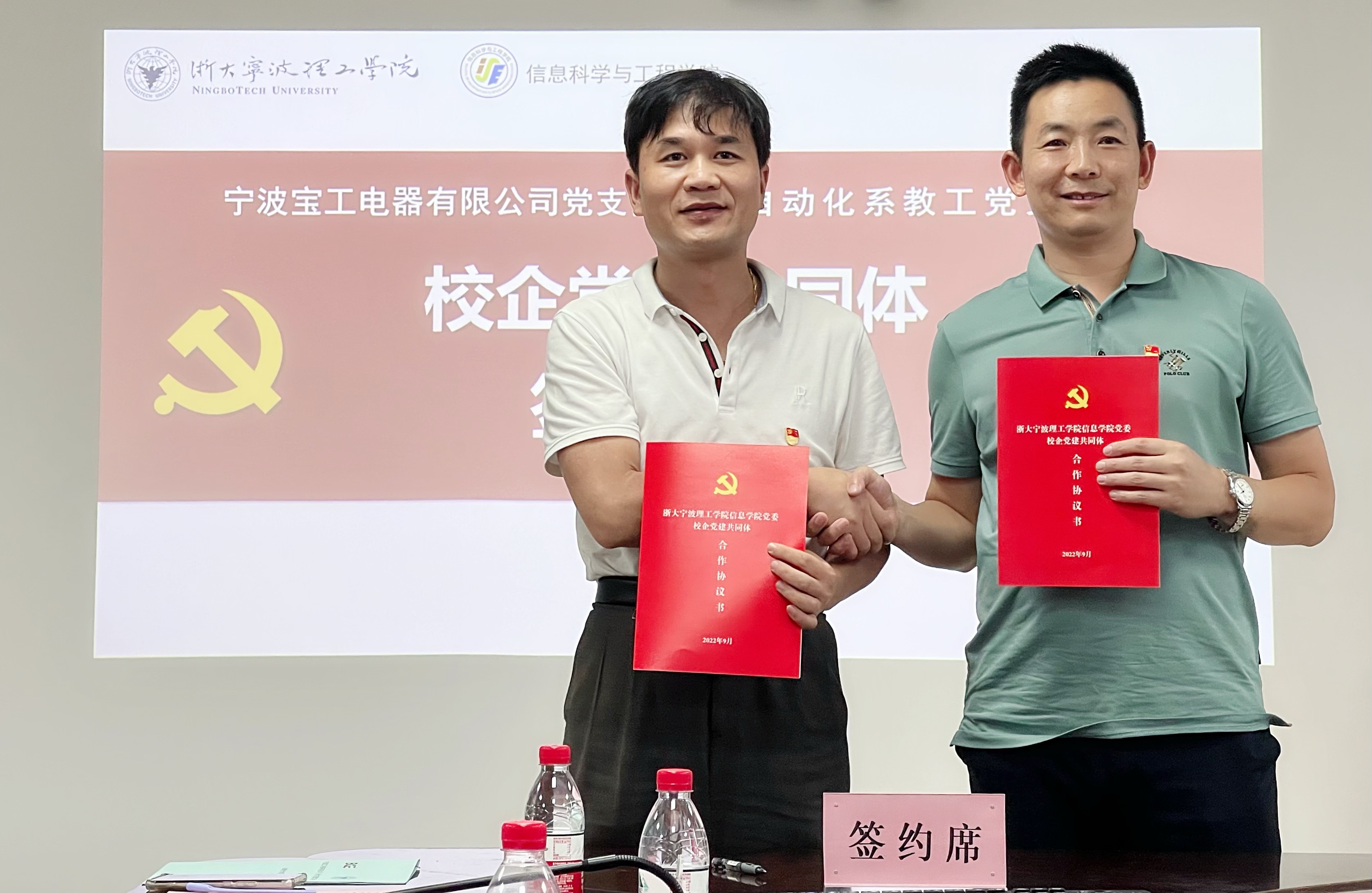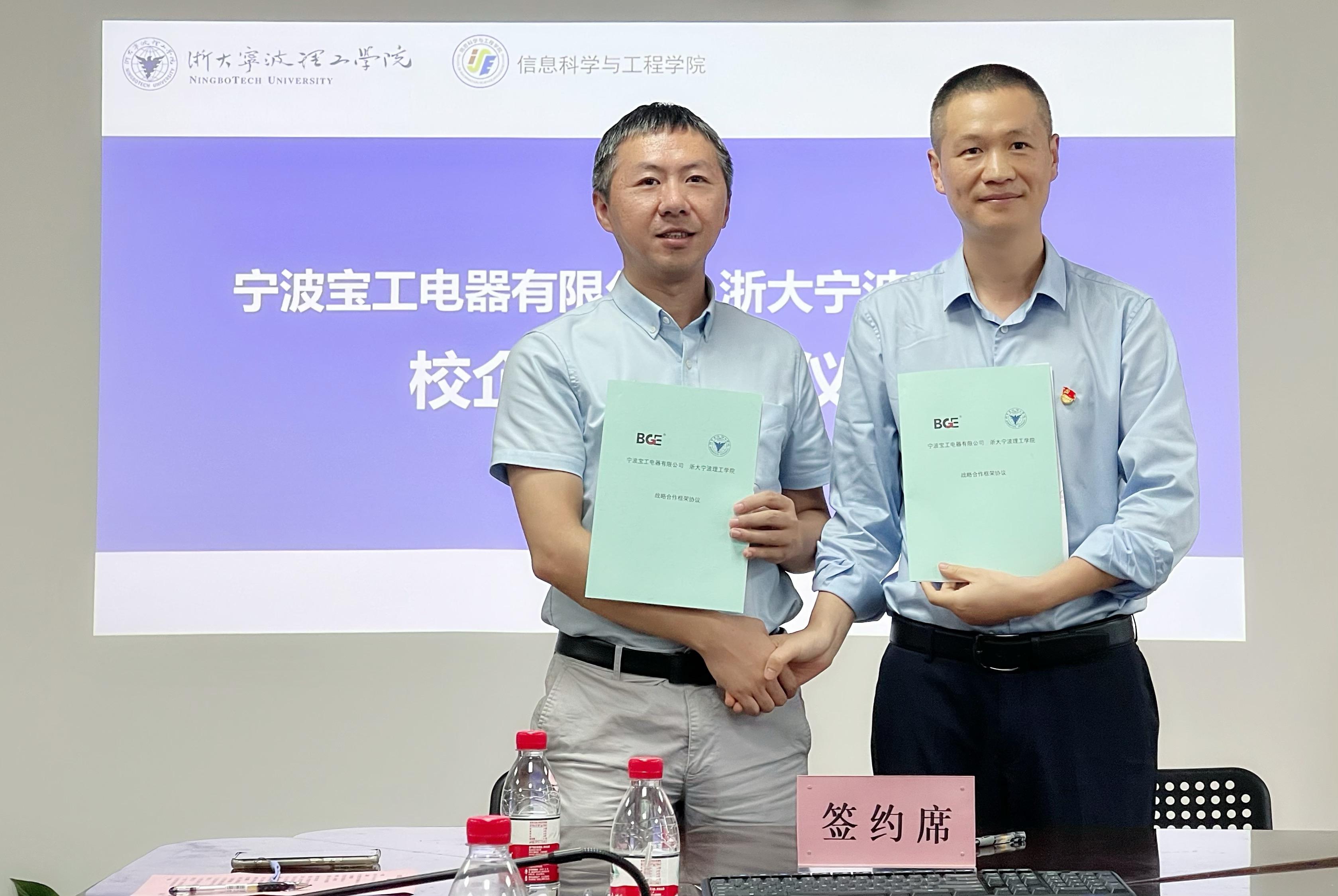 为全面深化产教融合,进一步强化校企衔接、促进校企合作,持续提升人才培养质量,2022年9月30日永利65335com与宁波宝工电器有限公司开展战略合作签约仪式。宁波宝工电器有限公司总经理周枢军,人力资源总监张志强出席;永利65335com党委委员、纪委书记黄光杰,科研处处长胡长兴,地方合作处副主管潘峰,以及永利65335com党委副书记郑毅等班子成员参加了此次签约仪式。