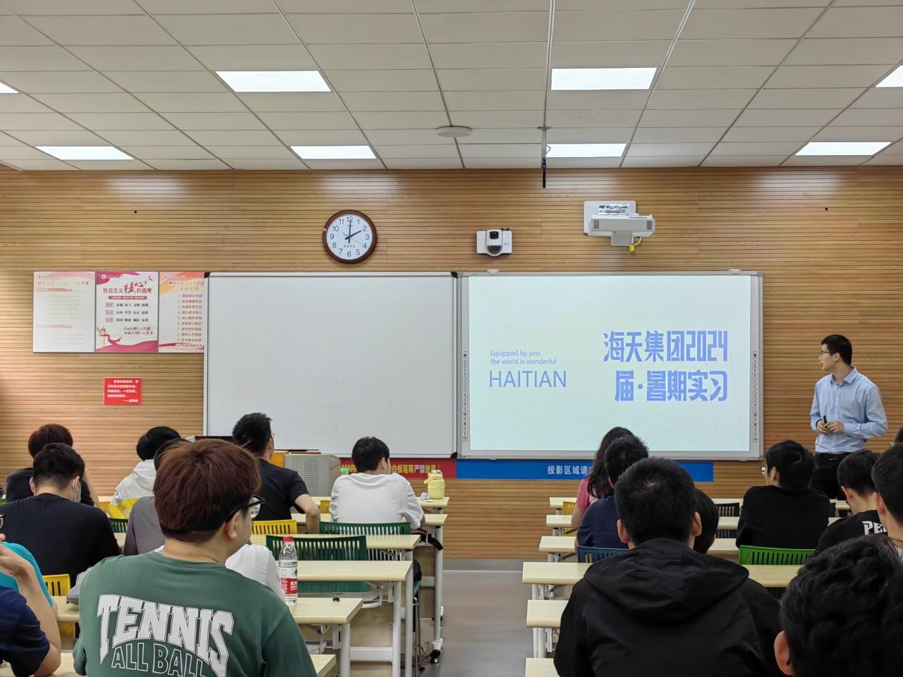 5月19日下午,永利65335com组织2024届毕业生参加海天集团实习生宣介会,近60余名大三员工参加此次活动。会后,企业开展了相关面试选拔活动。