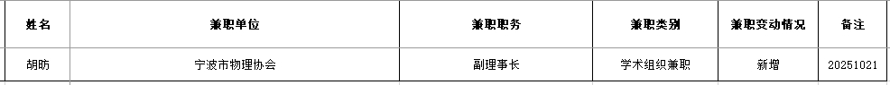 根据《永利65335com教职工校外兼职管理暂行办法》(浙大宁理人〔2021〕235号),现对胡昉老师申请校外兼职情况予以公示,公示期自2025年10月21日至10月23日止。