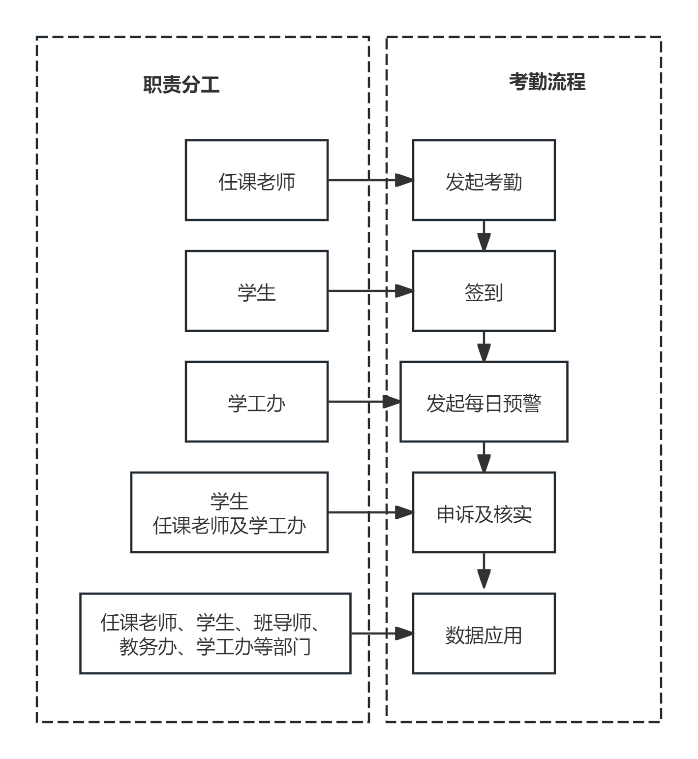 5.学工办:负责考勤数据对接、汇总及分析,建立员工缺勤台账,并同步给班导师、系;