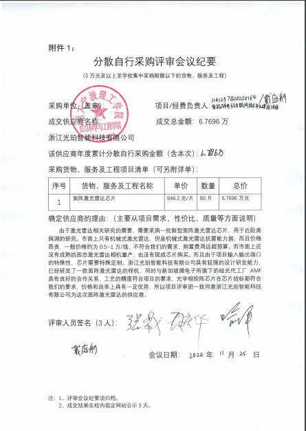 永利65335com面阵激光雷达芯片分散自行采购项目成交结果的公示