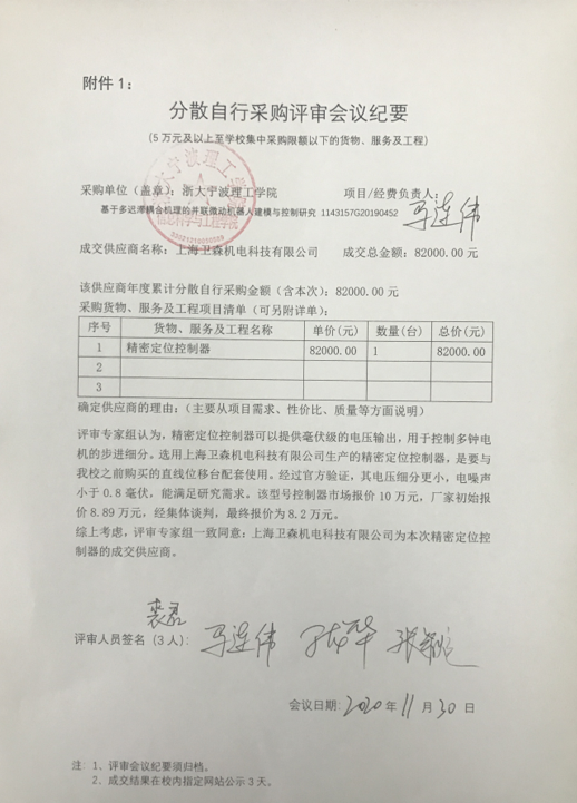 永利65335com精密定位控制器分散自行采购项目成交结果的公示