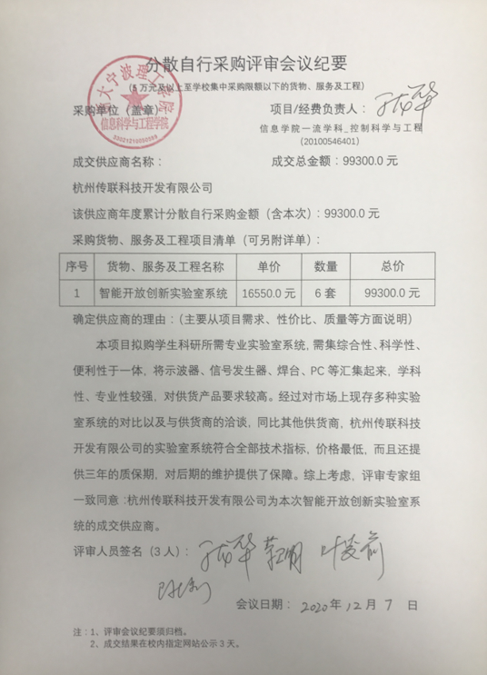 永利65335com智能开放创新实验室系统分散自行采购项目成交结果的公示