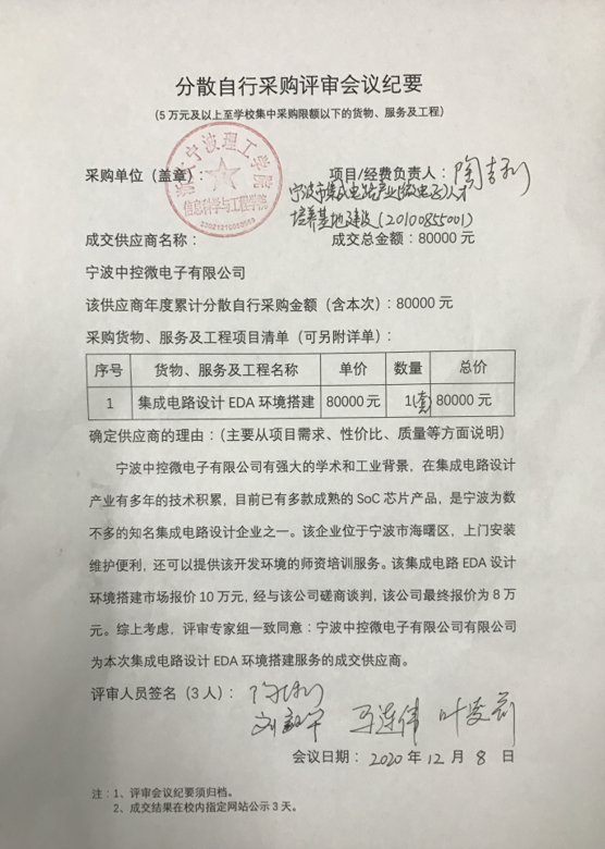 永利65335com集成电路设计EDA环境搭建分散自行采购项目成交结果的公示