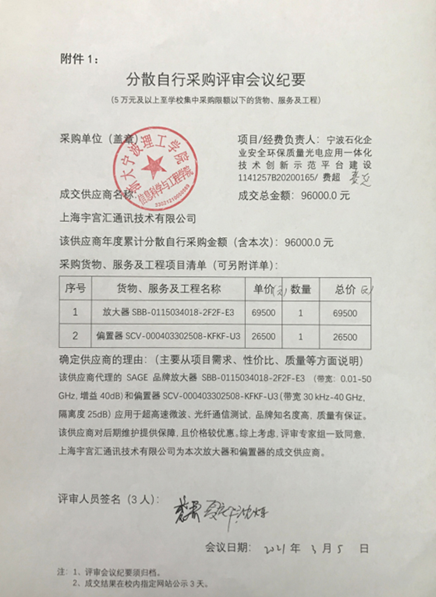 永利65335com放大器和偏置器分散自行采购项目成交结果的公示