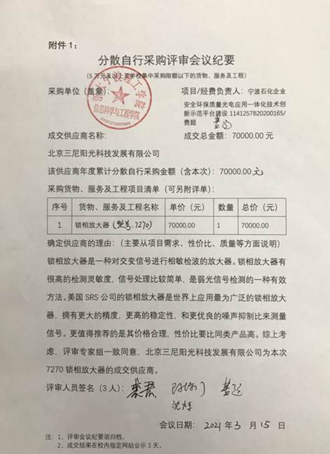 永利65335com锁相放大器分散自行采购项目成交结果的公示