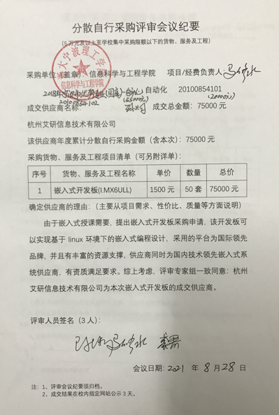 永利65335com嵌入式开发板分散自行采购项目成交结果的公示
