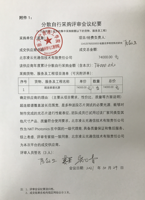 永利65335com超连续谱光源分散自行采购项目成交结果的公示