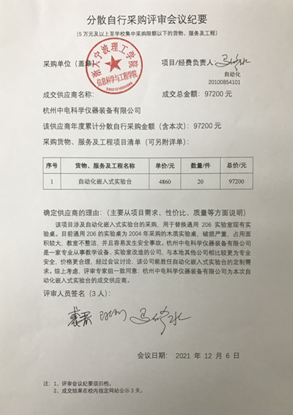 永利65335com自动化嵌入式实验台分散自行采购项目成交结果的公示