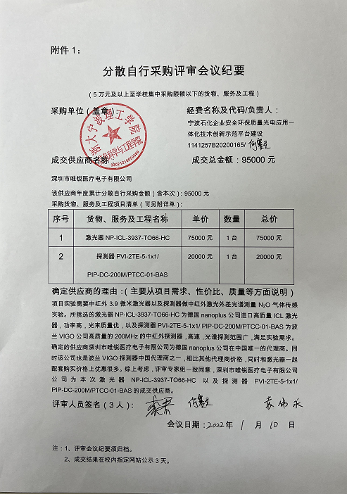 永利65335com激光器和探测器分散自行采购项目成交结果的公示