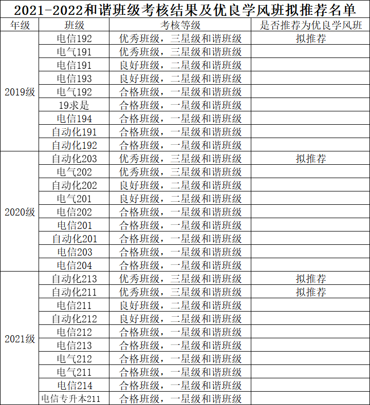 根据公司文件精神要求,按照《永利65335com本科生优良学风班、和谐班级创建实施细则》,经过班级申报,公司审核,现将永利65335com2021-2022学年和谐班级创建考核结果公司优良学风班拟推荐名单公示如下: