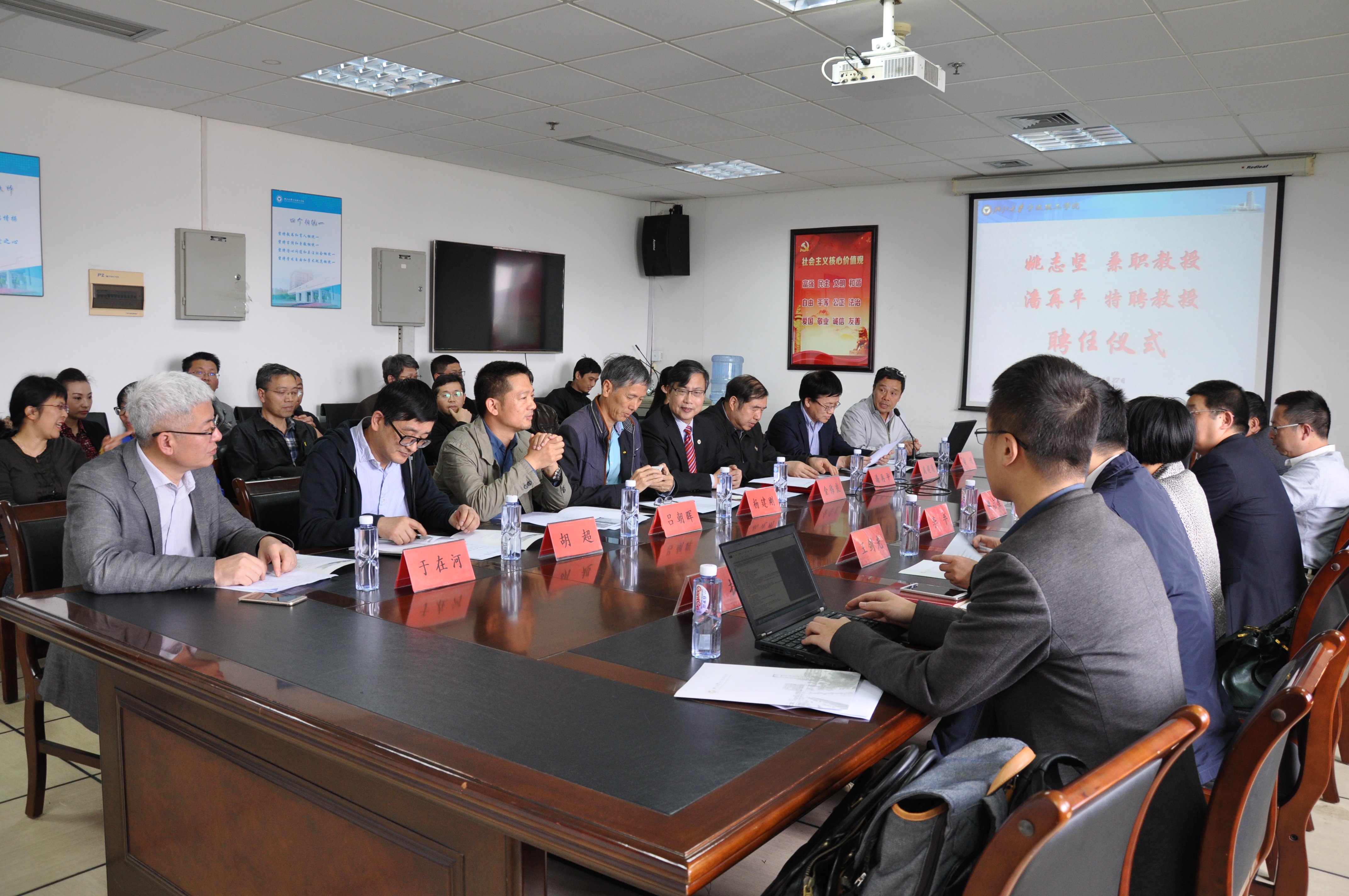 4月27日下午,永利65335com在石麟602会议室举行“三江学者”教学卓越特聘教授聘任仪式,聘任潘再平教授为教学卓越特聘教授。公司经理金伟良、副经理杨建刚出席,人事处、科研处、永利65335com、数据公司领导及师生代表参加了聘任仪式。聘任仪式由永利65335com经理黄进主持。