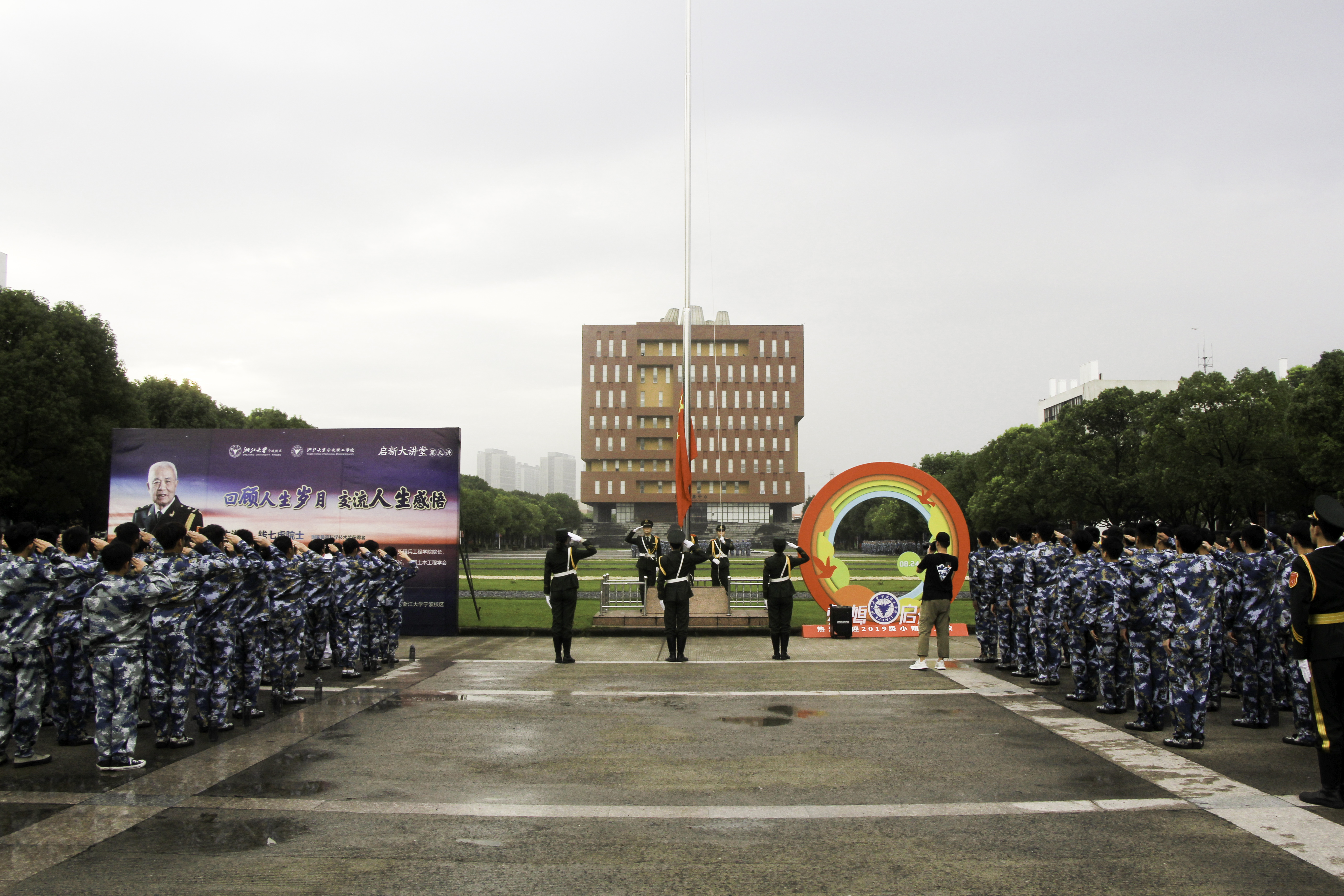 “特别的一次升旗仪式,看着国旗冉冉升起的那一刻,心里非常激动,应该是满满的自豪感吧,那一刻好像腿都感觉不疼了。”由于腿伤只能跟训的自动化192班同学谷添皓激动地说。