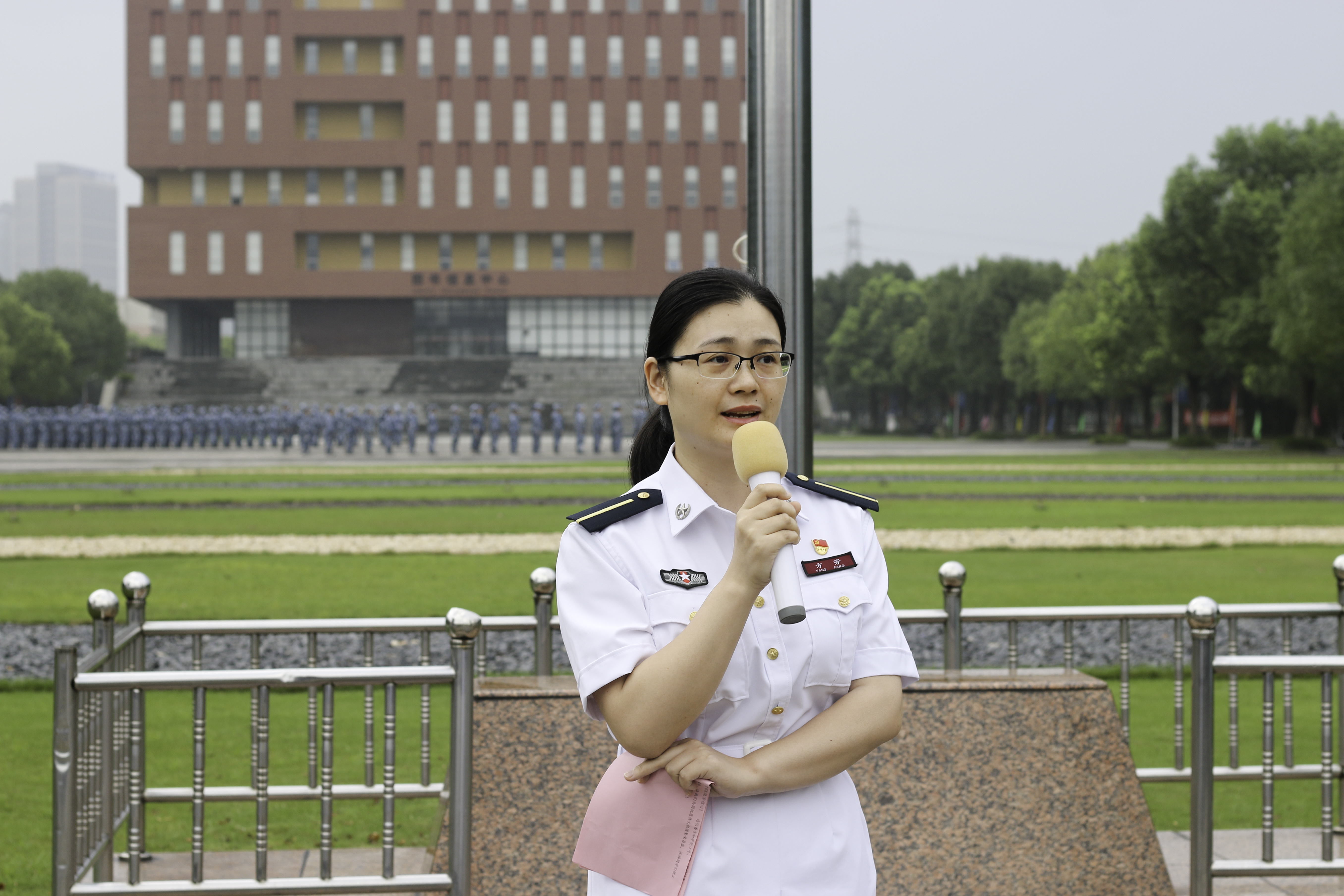 升旗仪式上,​永利65335com自动化192班新生代表韩心怡同学上台发言,代表新生们表达了对祖国的美好祝愿、对完成军训任务的决心。