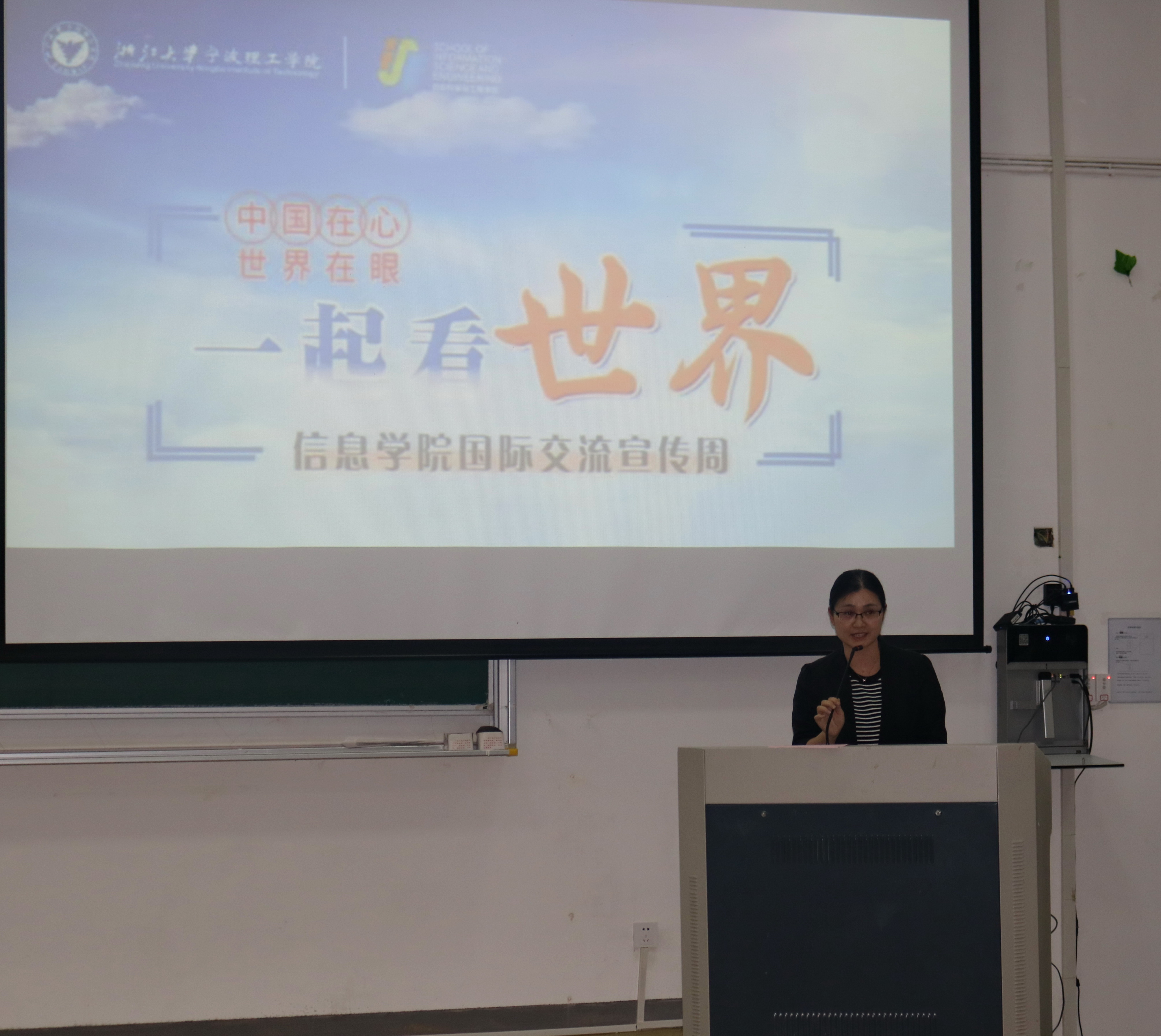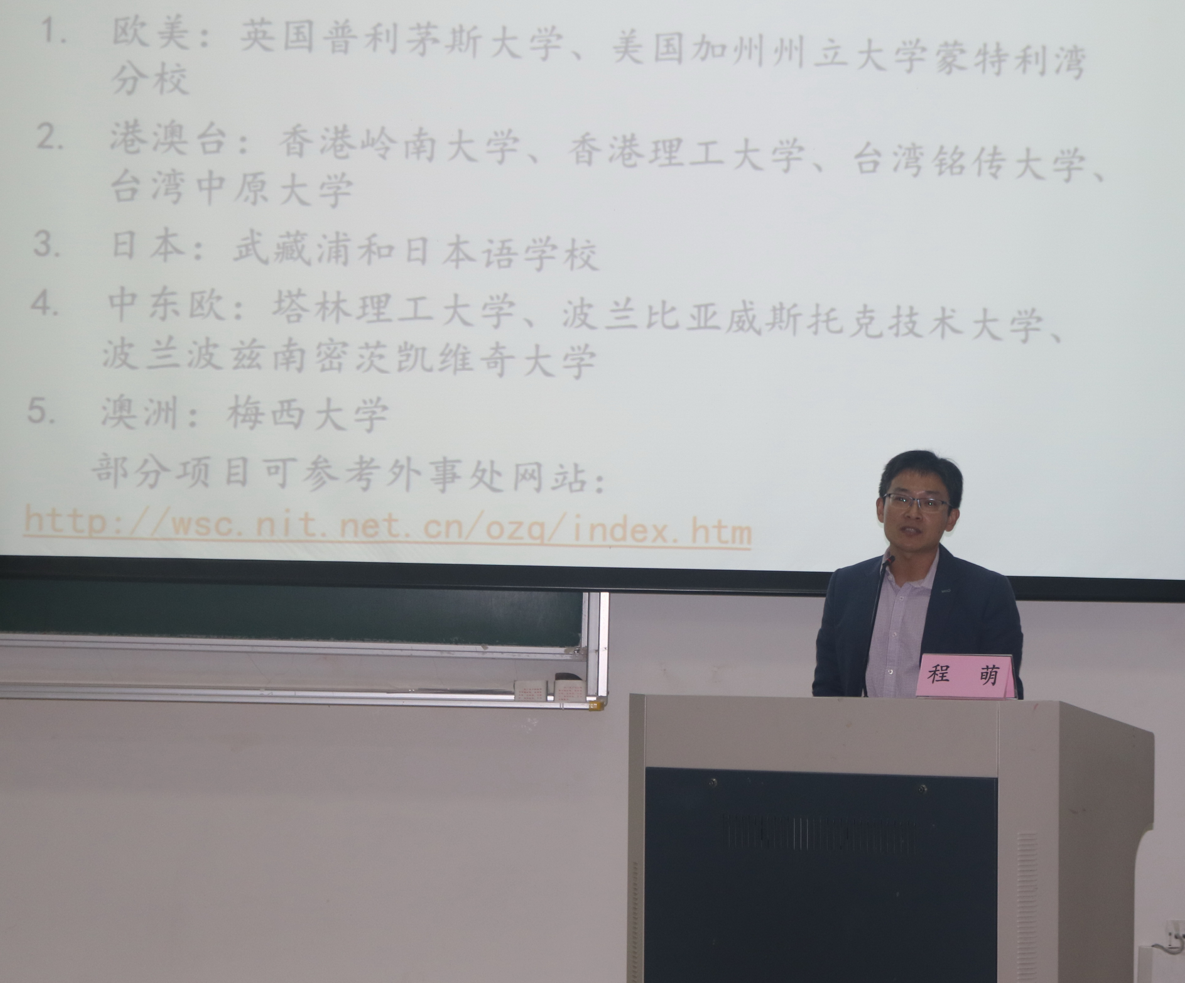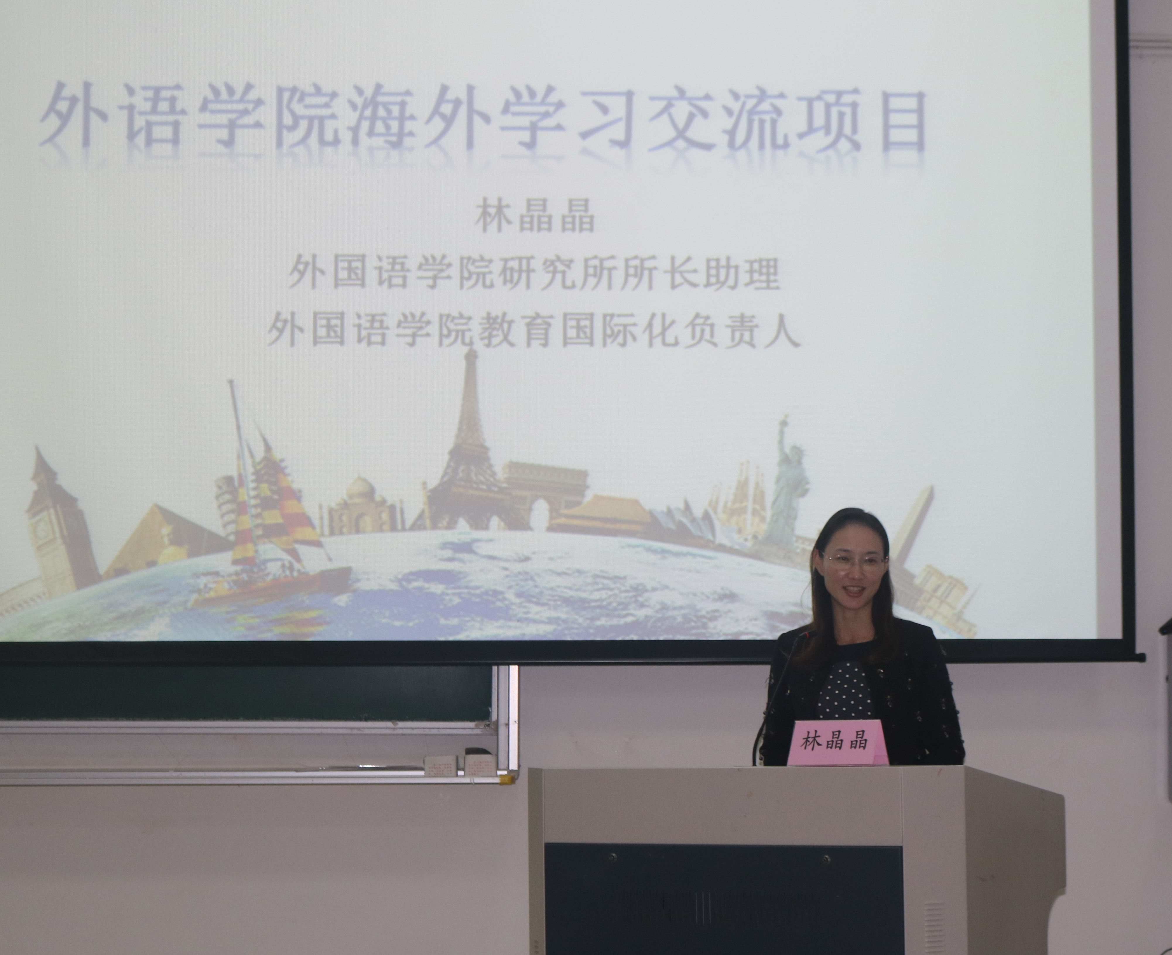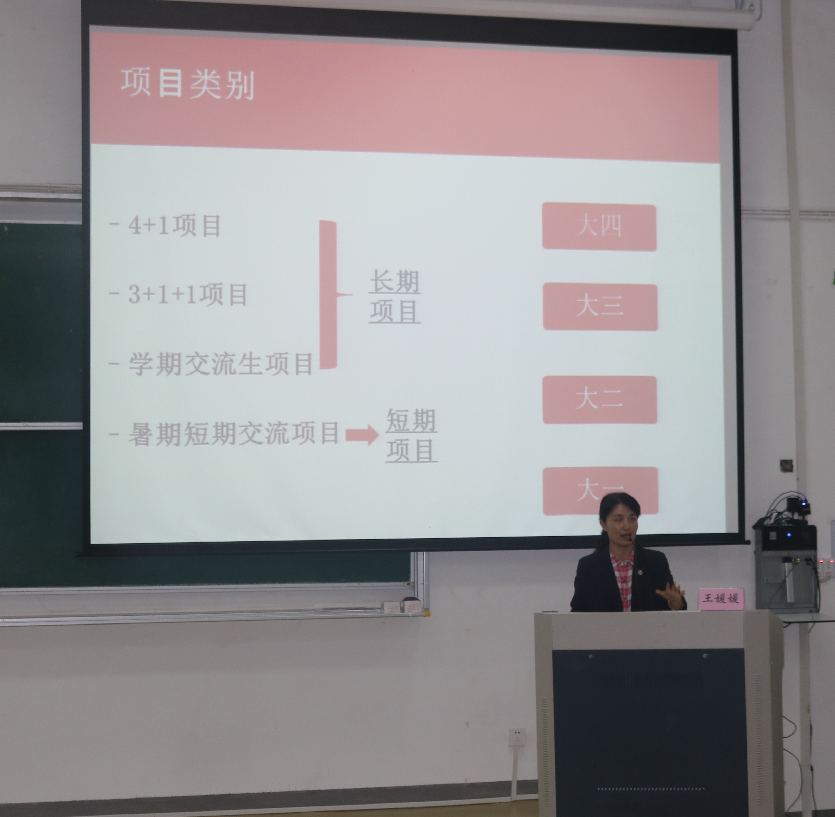 外语公司林晶晶老师带领同学们“游历”了美国拿撒勒大学、波兰波兹南密茨凯维奇大学、加拿大英属哥伦比亚大学等多个合作院校,用一个个参与者的亲身经历生动地描述了合作项目的相关情况。林老师鼓励大家要敢于走出自己的小世界,看看外面的大世界,才能够“行学天下、梦想开花”。