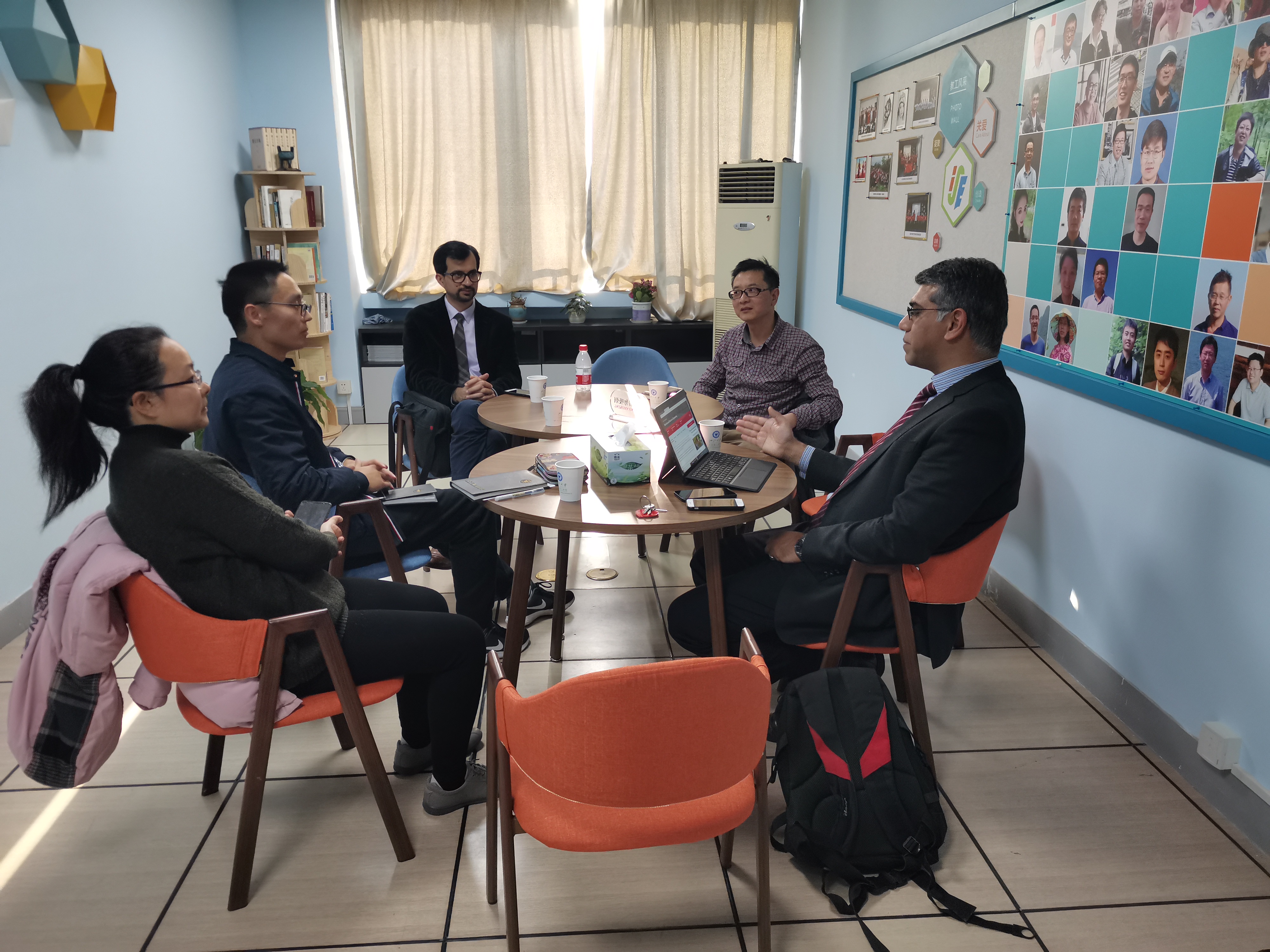 当天下午,永利65335com吴飞青副教授、赵祥红老师和吴成玉老师与女王大学的两位来访老师进行了深入的教学研讨。Hamza博士主要介绍了该校的电子电路类课程的基本情况,包括学分设置,考核方法,实践教学内容设计及实验室配置等详细内容。公司三位老师也介绍了公司电子电路类课程的现状和目标,双方就如何激发员工的学习兴趣、如何更好培养员工的实践动手能力以及实践项目的注意事项等共同关注的问题进行了热烈讨论。