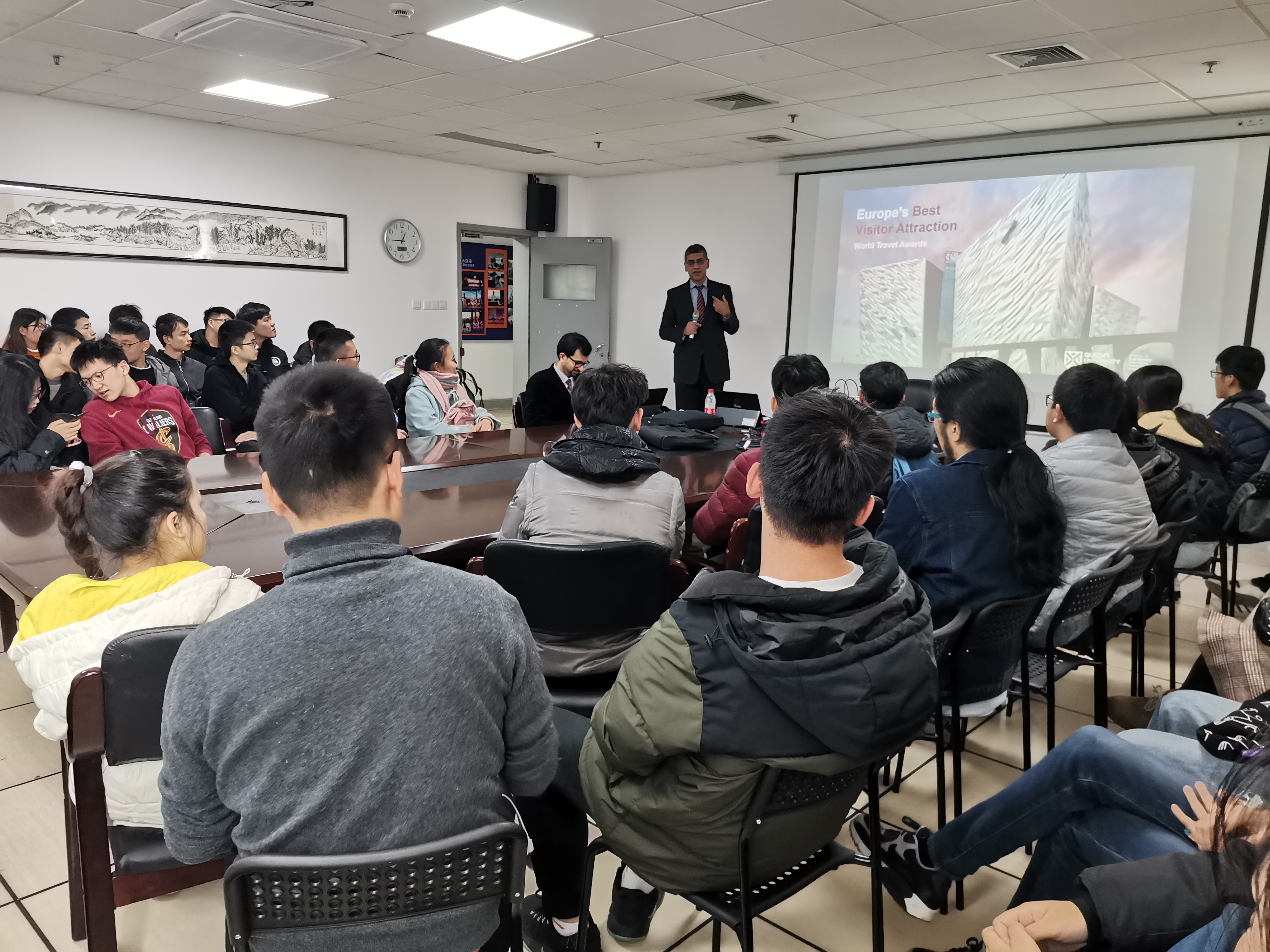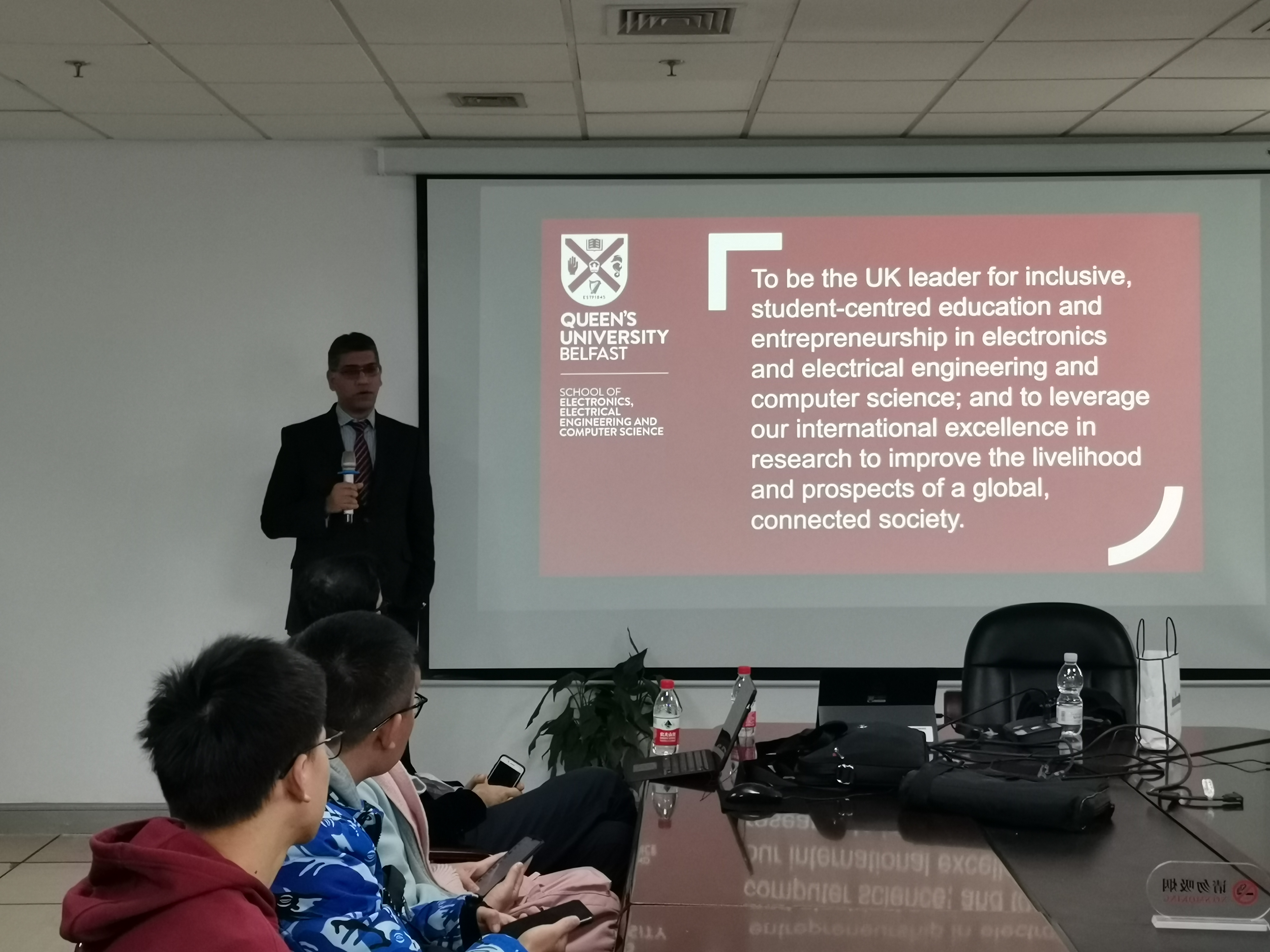 随后,来自永利65335com、数据公司和启新公司的60余位同学聆听了女王大学两位老师的交流项目宣讲内容。首先,Wasif为大家介绍了女王大学的基本概况以及在国际上享有的荣誉和地位。贝尔法斯特女王大学是全球前1%的学府,各专业团队力量雄厚,教学方式新颖,注重培养员工的实践能力。Wasif用互动提问的交流方式让同学们在轻松愉悦的气氛下详细了解了女王大学的主要情况。接着Hamza博士又为在座的同学们详细介绍了summer school的相关活动安排及专业学习内容设置,启新公司的同学们积极与现场的两位老师进行互动沟通,询问了包括专业设置、交流项目详情及饮食文化等内容,会场上不时传出欢笑声。最终,宣讲会在同学们的热烈交流声中结束。