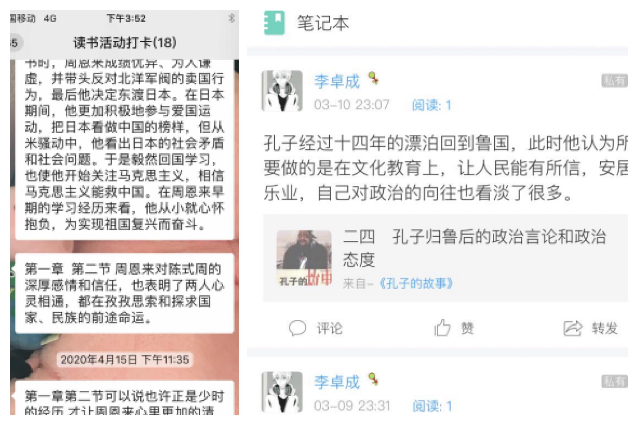 至4月23日世界读书日,​永利65335com已开展两期“我读中华文化”线上读书活动,同学们反响积极。每期线上读书活动,公司精选通俗易懂的中国传统文化类书籍,号召员工通过“学习通”app在线共阅读,并做笔记,同时每日进行读书感悟打卡。