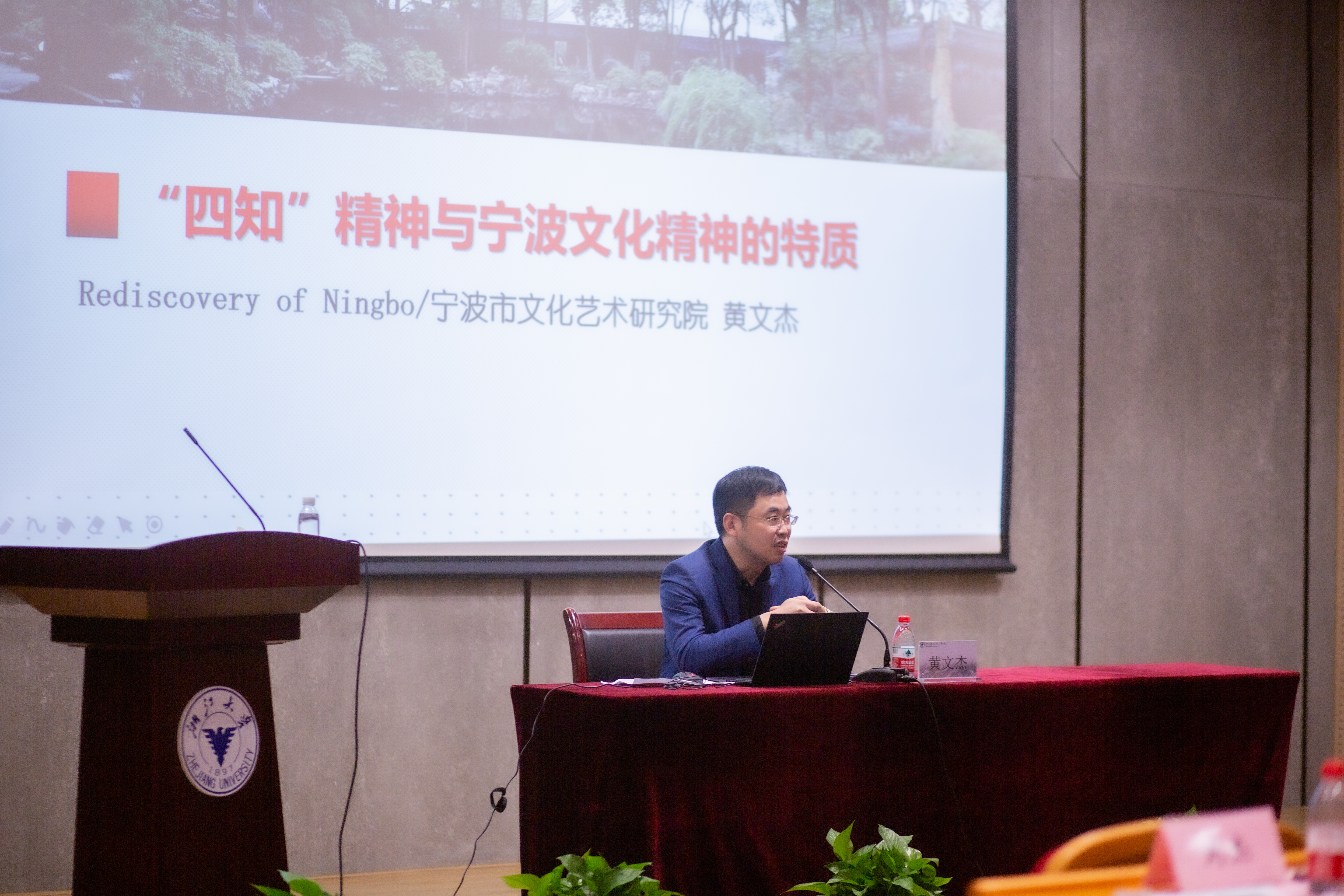 作为本次发布仪式的压轴环节,宁波文化艺术研究院副书记、宁波文化研究会副会长黄文杰老师为现场师生作了题为《“四知精神”与宁波文化精神的特质》的专题讲座,此次讲座也是“知行新说”系列专题讲座之一。
