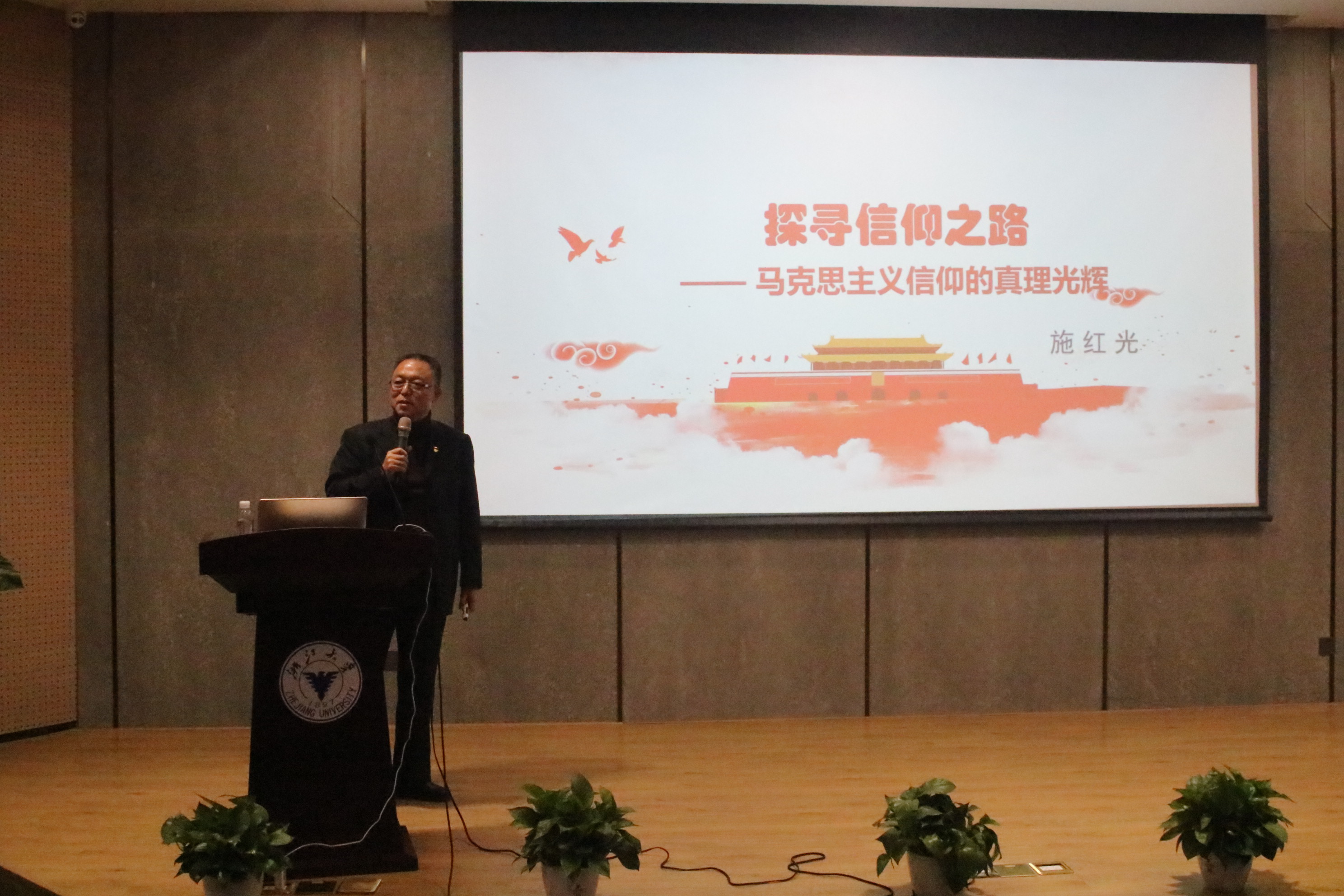 施红光以信仰开篇,通过刘胡兰英雄的事迹引入,深入浅出阐述了信仰的重要意义和当代价值;并围绕马克思主义信仰的“四个内核”,马克思主义信仰者的人格特征以及马克思主义信仰者的政治生命三大主题,以学理剖析和故事演绎这种耳目一新的嵌入式宣讲,为在座的同学们带来了一场生动的思政课。