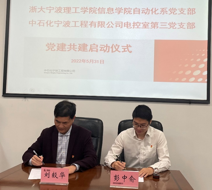 永利65335com自动化系教工党支部与中石化宁波工程有限公司电控室第三党支部签订了党建共建合作协议。