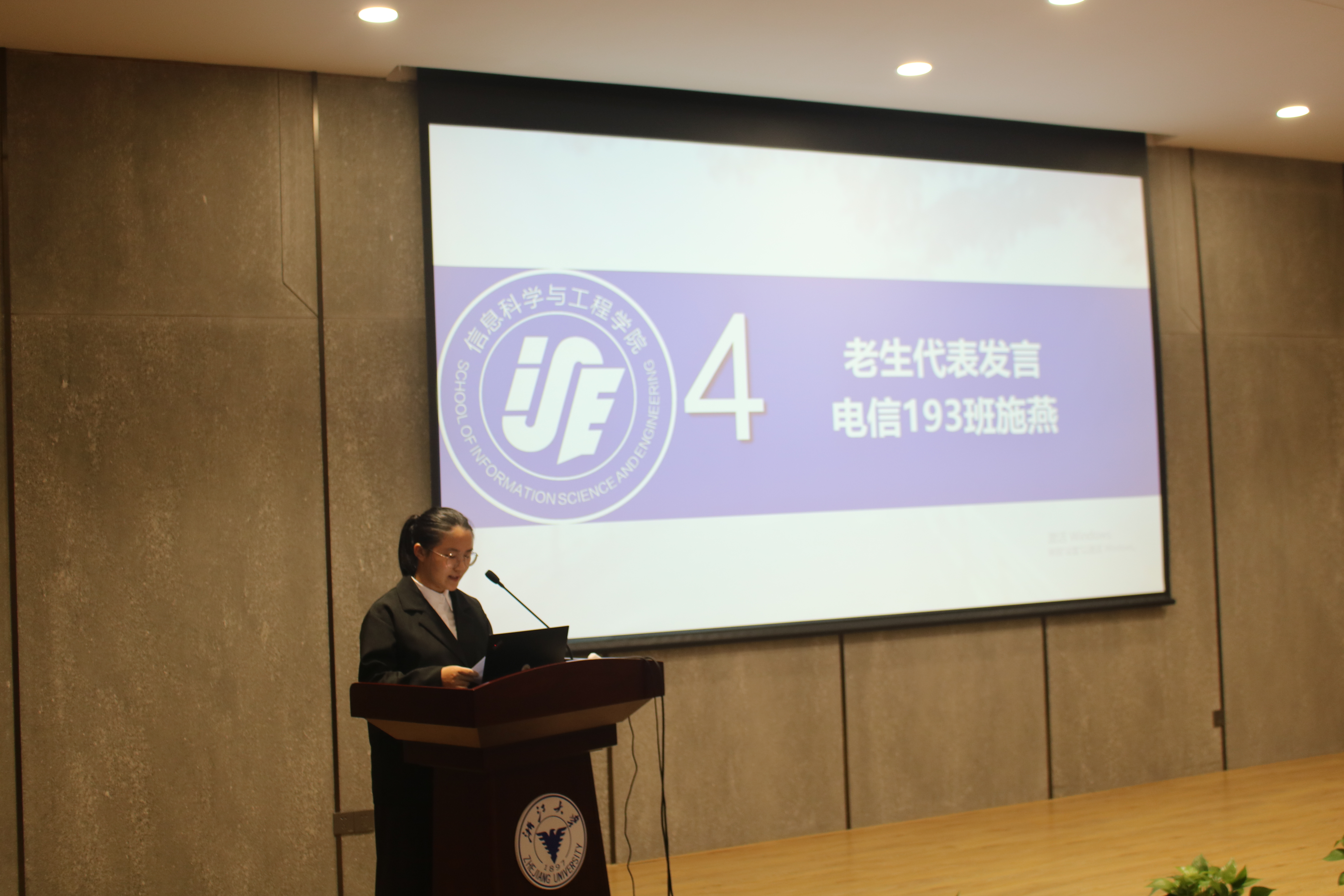 公司副经理陶吉利向新生们详细介绍了永利65335com的概况,各专业培养目标、毕业要求、专业特色、课程体系以及员工培养成果,让新生们对公司概况和专业情况有了初步的认识。教师代表公司副经理裘君勉励大家,成长是一种个人的修行,要学会独立与成长,要勤奋学习更要心怀梦想和使命,鼓励新生们学习、实践、创新,为公司学科竞赛再添佳绩。老生代表公司员工会主席施燕为新生们分享了自己学习和生活的成长心得,鼓励新生们在信息开启追梦和圆梦之旅;新生代表自动化求是班周立君同学围绕《万物理论》、《模仿游戏》、《香浓传》三部电影,分享自己对大学对人生的思考,幽默独到的发言风格获得台下师生的热烈掌声。党委副书记方芳在总结中勉励全体新生珍惜当下、抓住现在,扬起理想风帆,积蓄前进能量,锻造过硬本领,用有趣的态度过向往的生活。