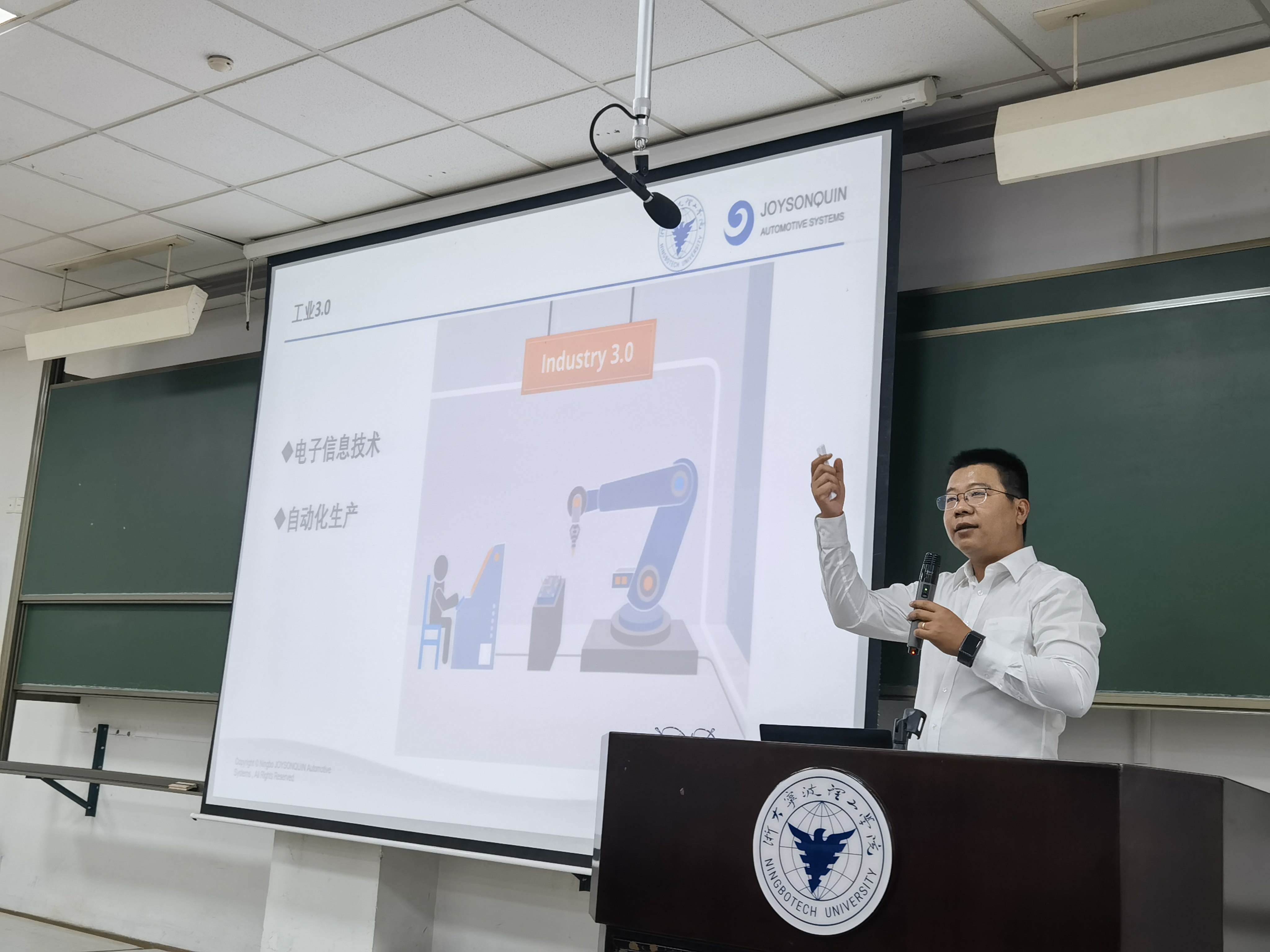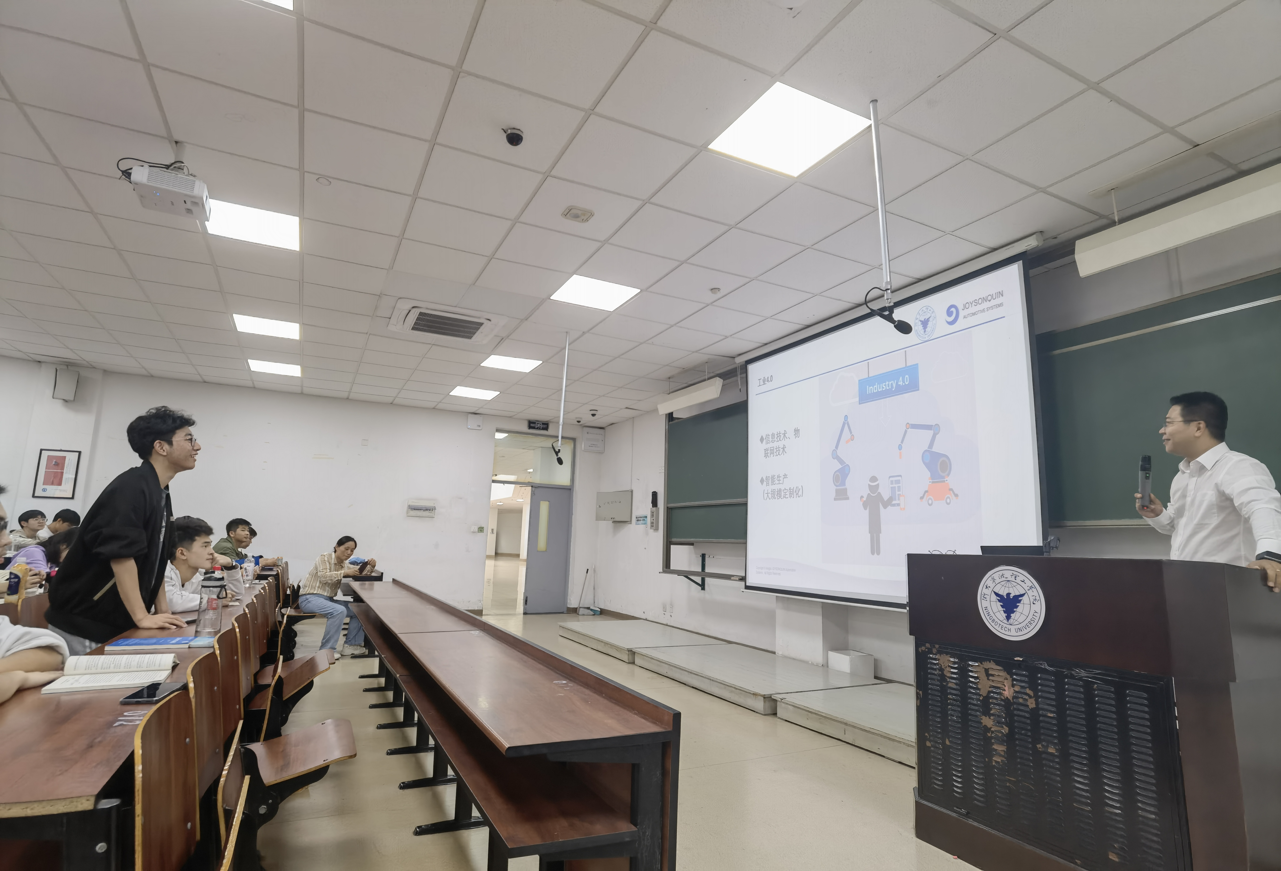 为深化公司产品改革,贯彻落实“校企协同育人”的模式,永利65335com结合产业发展现状及专业课程开设情况,开展企业导师进课堂活动。永利65335com于2023年11月9日荣幸邀请了均胜群英汽车系统股份有限公司装备工程部的高级经理郭腾云先生,来主讲《自动化专业导论》,为员工们带来了一场别开生面的学术盛宴。公司还为郭腾云颁发了企业导师聘书。