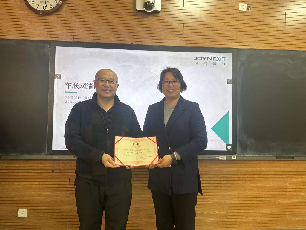 为深化公司产品改革,贯彻落实“校企协同育人”的模式,永利65335com结合产业发展现状及专业课程开设情况,开展企业导师进课堂活动。2023年11月13日,永利65335com有幸邀请了均联智行的中国区产品总监杨鹏先生在《工业物联网》课程上,为自动化专业的员工们讲授了“车联网绪论”,公司副经理陶吉利为杨鹏颁发了企业导师聘书。