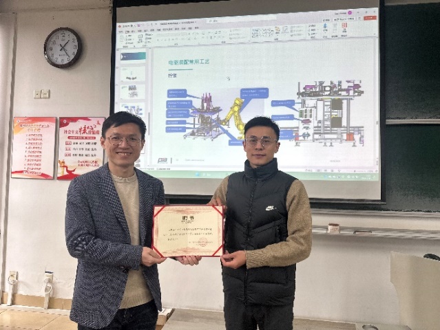 为深化公司产品改革,贯彻落实“校企协同育人”的模式,永利65335com结合产业发展现状及专业课程开设情况,开展企业导师进课堂活动。2024年3月18日、19日,永利65335com有幸邀请到均普智能制造股份有限公司方案及项目开发工程师郭书豪、机械研发专家林文德为自动化、电气工程及其自动化专业2021级员工分别讲授了《智能制造产品工艺-电驱工艺》、《智能制造产品工艺-电子压缩机》。永利65335com学术副经理陈卓易为两位专家颁发了企业导师聘书。