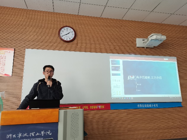 《电子压缩机》课程中,林文德首先介绍了电子压缩机的基本概念和原理,并按电子压缩机的生产流程,逐一介绍了电机定转子、压缩机动盘定盘、控制单元、壳体等部件的自动化装配工艺,最后,对其中的几个关键步骤作了详细的拆解,对《现代电机CAD技术》课程做了机械结构、生产工艺方面的补充。同学们对电机系统的生产这一复杂工程问题有了更深入的理解。