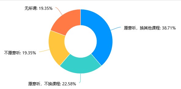 活动结束后,做了关于互听互评的问卷调查,调查结果显示:70.97%的教师认为互听互评对教学有帮助,大部分老师愿意继续开展该项活动。