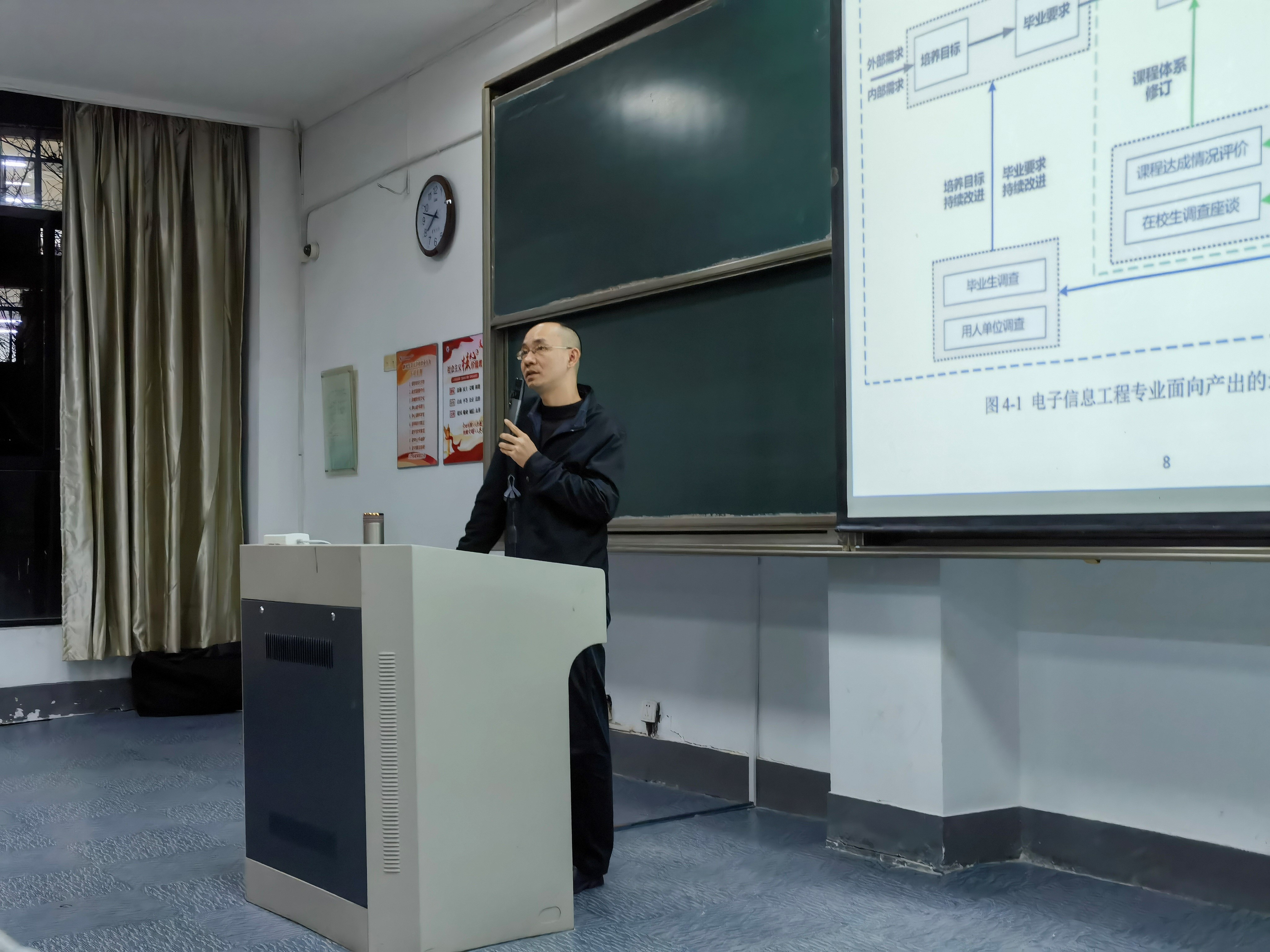 练老师首先介绍了工程教育基本理念“员工中心—产出导向—持续改进”给传统教育方式带来的改变,对于同学个人发展的重要意义。介绍了本专业培养目标、毕业要求、课程体系、课程目标的整体设计方式与运行逻辑,解释了12条毕业要求为何在工程工作中“一个都不能少”,分析了同学们切身感受到的课程教学演变的原因。练老师建议同学们在学习过程中多与任课老师互动沟通,使老师获取更及时客观的评价数据及效果反馈,帮助老师围绕课程目标,及时调整教学设计,达成更好的学习成效。练老师还鼓励大家在工程教育规范下的学习和评价方式中积极参与,发挥主动性,珍惜公司为达成毕业要求所精心设计的教学环节及努力创造的学习条件,全面锻炼和提升自身各个方面的能力。刚刚步入大二的21级同学,认真对待学业和个人职业发展,八年之后培养目标的达成可期。
